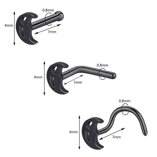 20G Black Moon Triangle Nose Studs Piercing Nose Bone Shape L Shape Crokscrew Nose Rings Stainless Steel Nostril Piercing