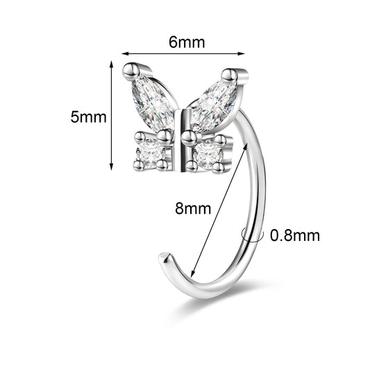 20G Butterfly Zirconia Nose Piercing Soft Wire Conch Cartilage Helix Piercing