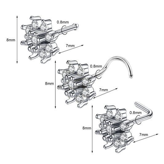 20g Snowflake Nose Rings Piercing Nose Bone L Shape Corkscrew Nose Studs