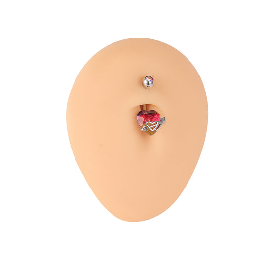 14G Heart Belly Navel Rings Red Crystal Belly Button Rings