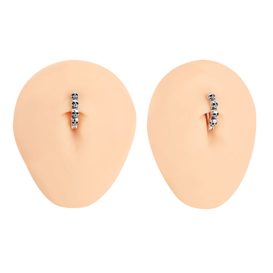 14G Punk Skull Belly Navel Rings 925 Silver Reverse Curved Belly Button Rings