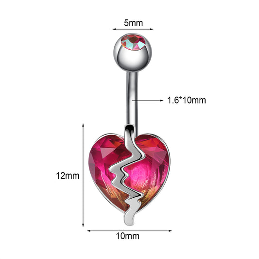 14G Heart Belly Navel Rings Red Gradient Zirconia Belly Button Rings