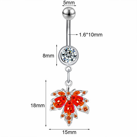 14G Maple Leaves Belly Navel Rings Red Zircon Belly Button Rings