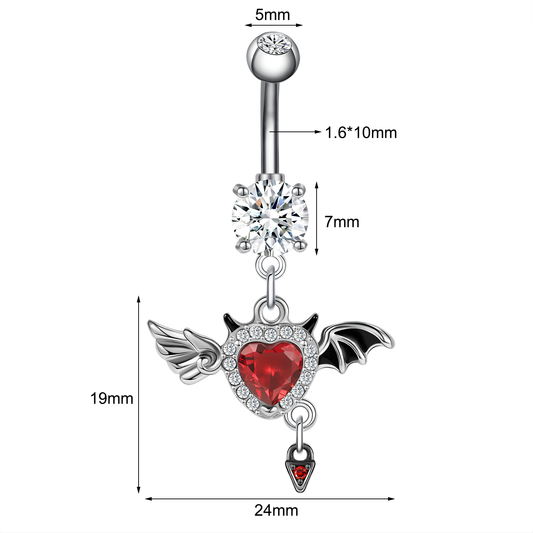 14G Devil Wings Belly Navel Rings Red Zircon Belly Button Rings