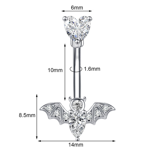 14G Bat Dangle Belly Navel Rings Cubic Zirconia Belly Button Rings