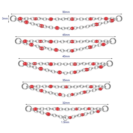 5Pcs/Set 32~50mm Stainless Steel Red Ball Nose Stud Chain-Economic Set