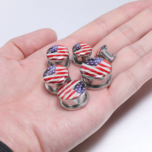 1 Pair 8-18mm (0g-3/4")Plugs and tuunels US Flag Stainless Steel Ear Expander