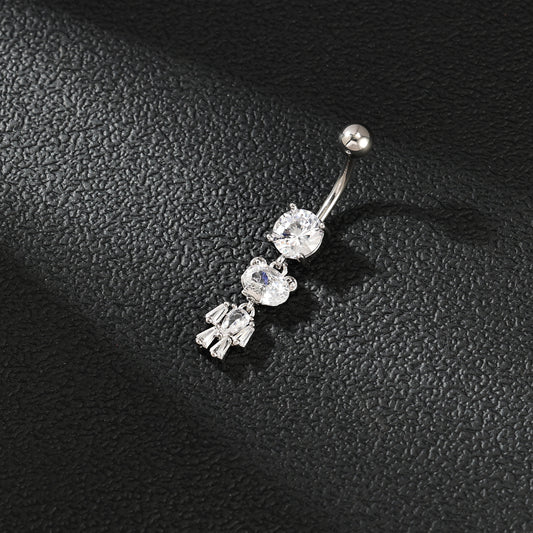 14G Bear Dangle Belly Navel Rings Bling Zircon Belly Button Rings