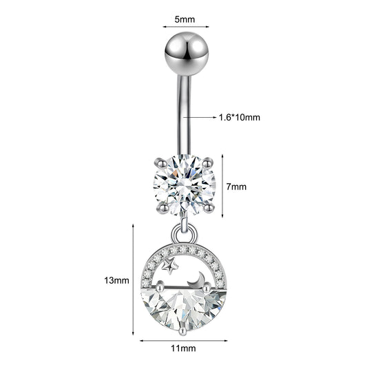14G Moon Star Dangle Belly Navel Rings Clear Zircon Belly Button Rings