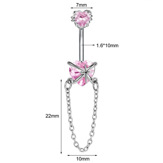 14G Heart Dangle Belly Navel Rings Bling Zircon Belly Button Rings