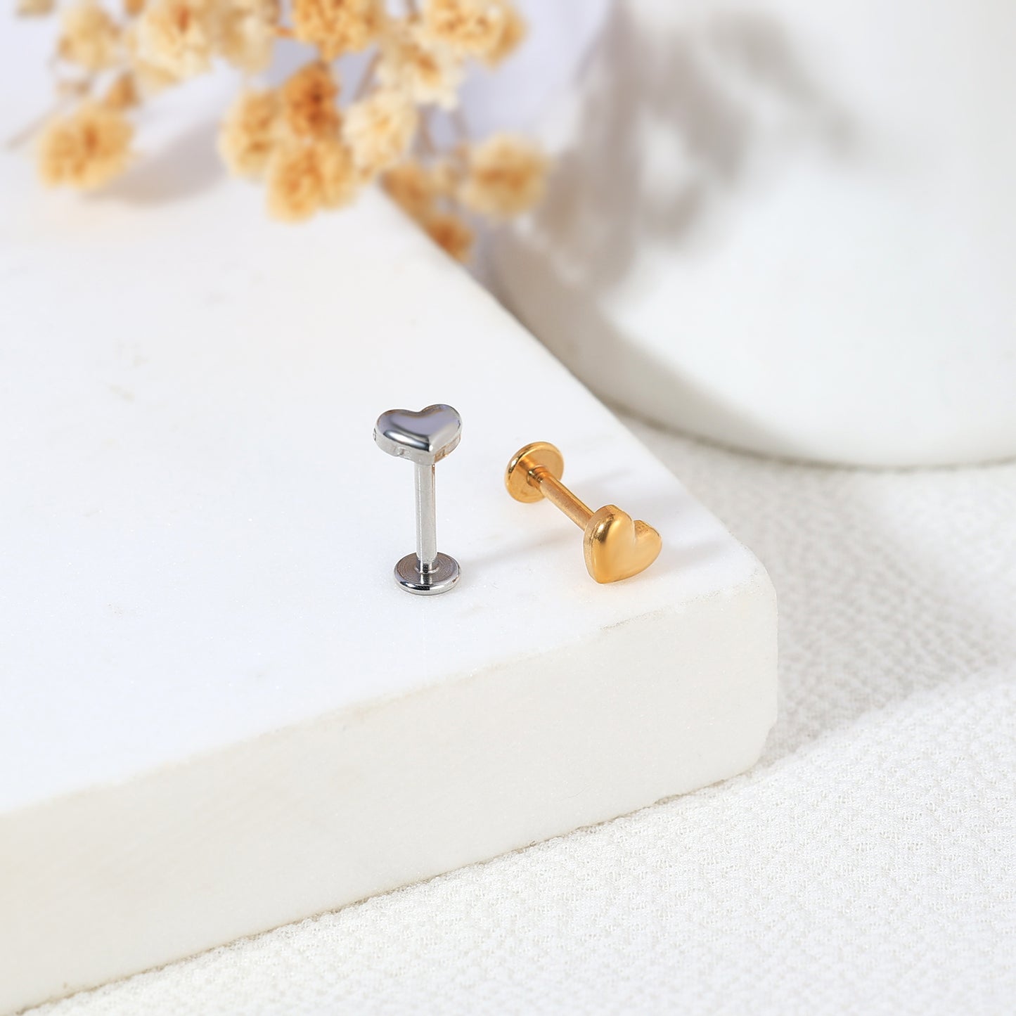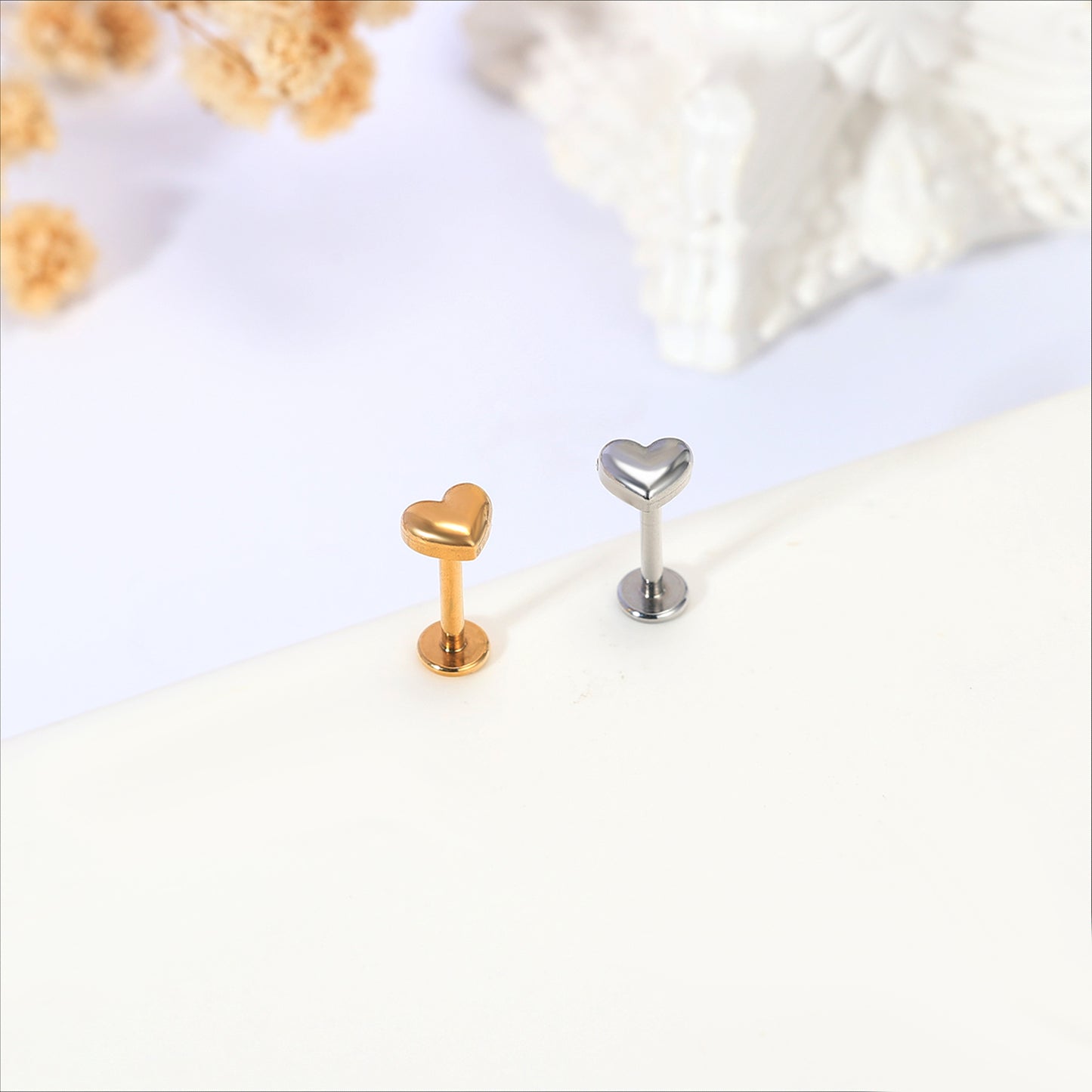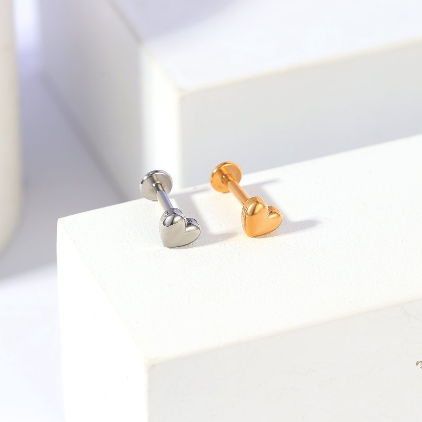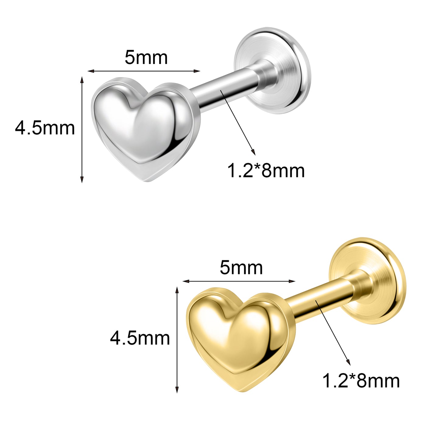 16g Heart Labret Ring Flat Back Stud Earring Conch Helix Lip Piercing