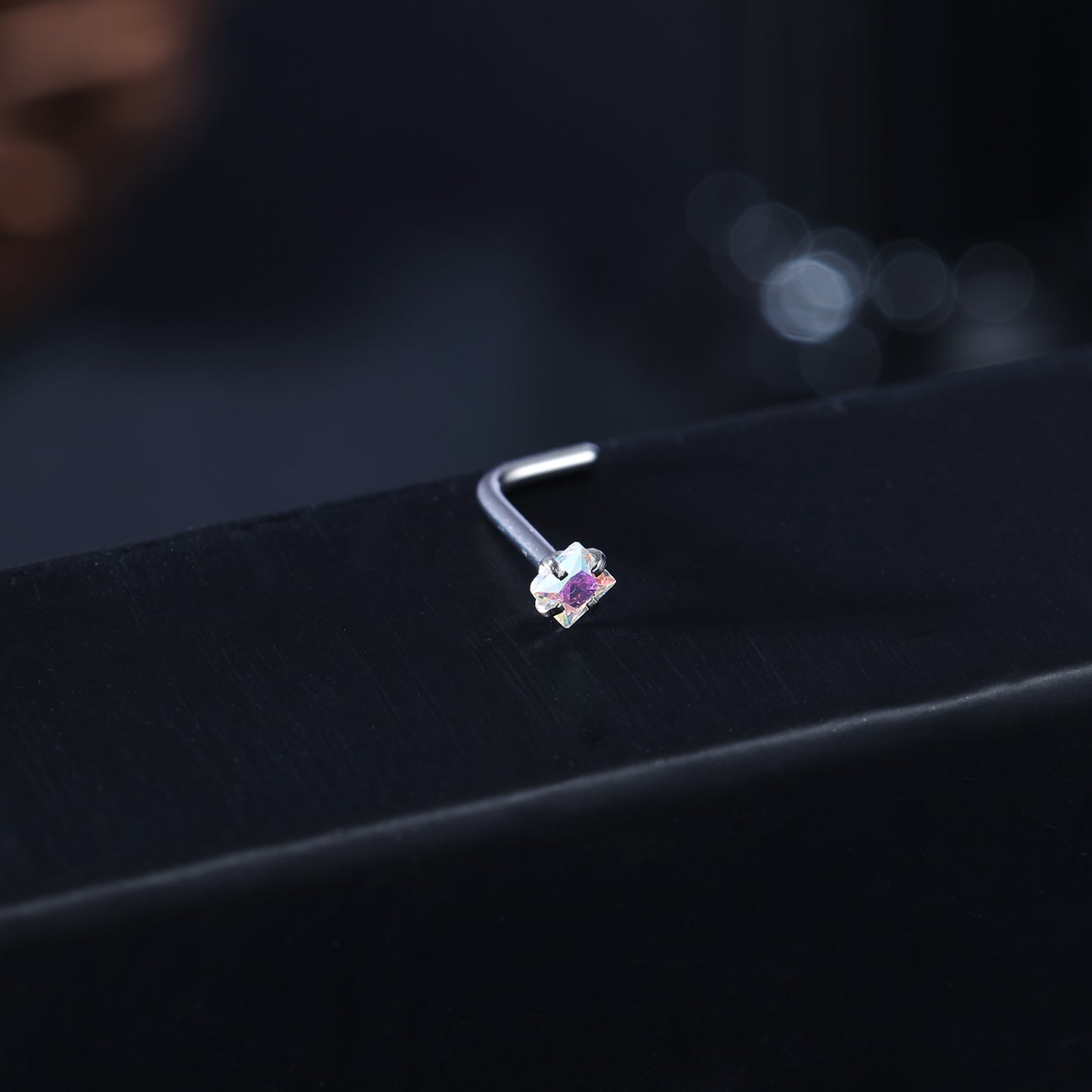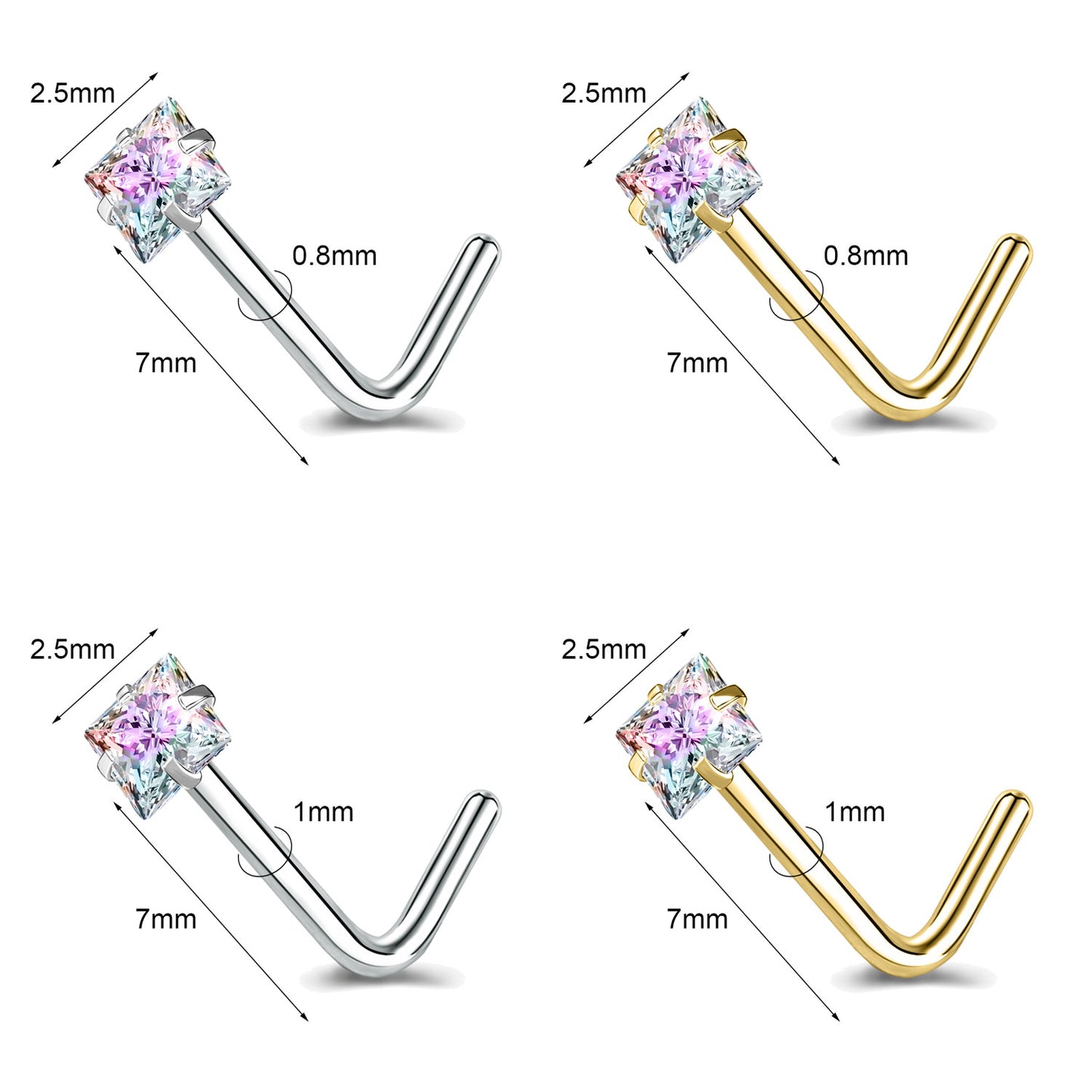 18G/20G Stainlesss Steel Nose Studs L Shape Nose Piercing AB Zirconia Nostril Piercing