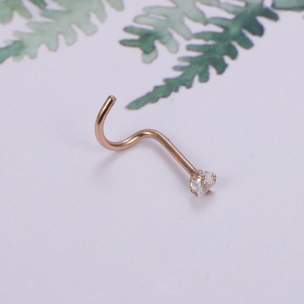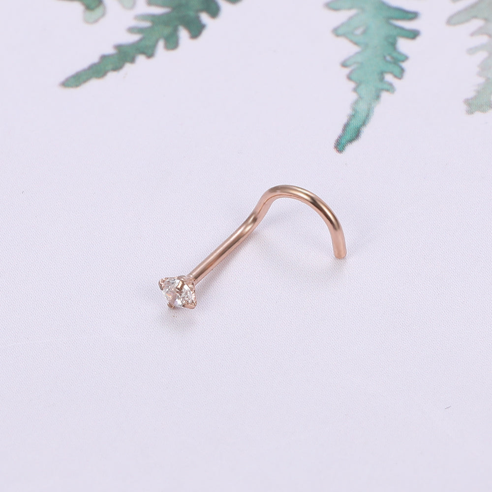- Type: Curve Nose Piercing, Stone: prong setting with Cubic Zirconia-2mm.