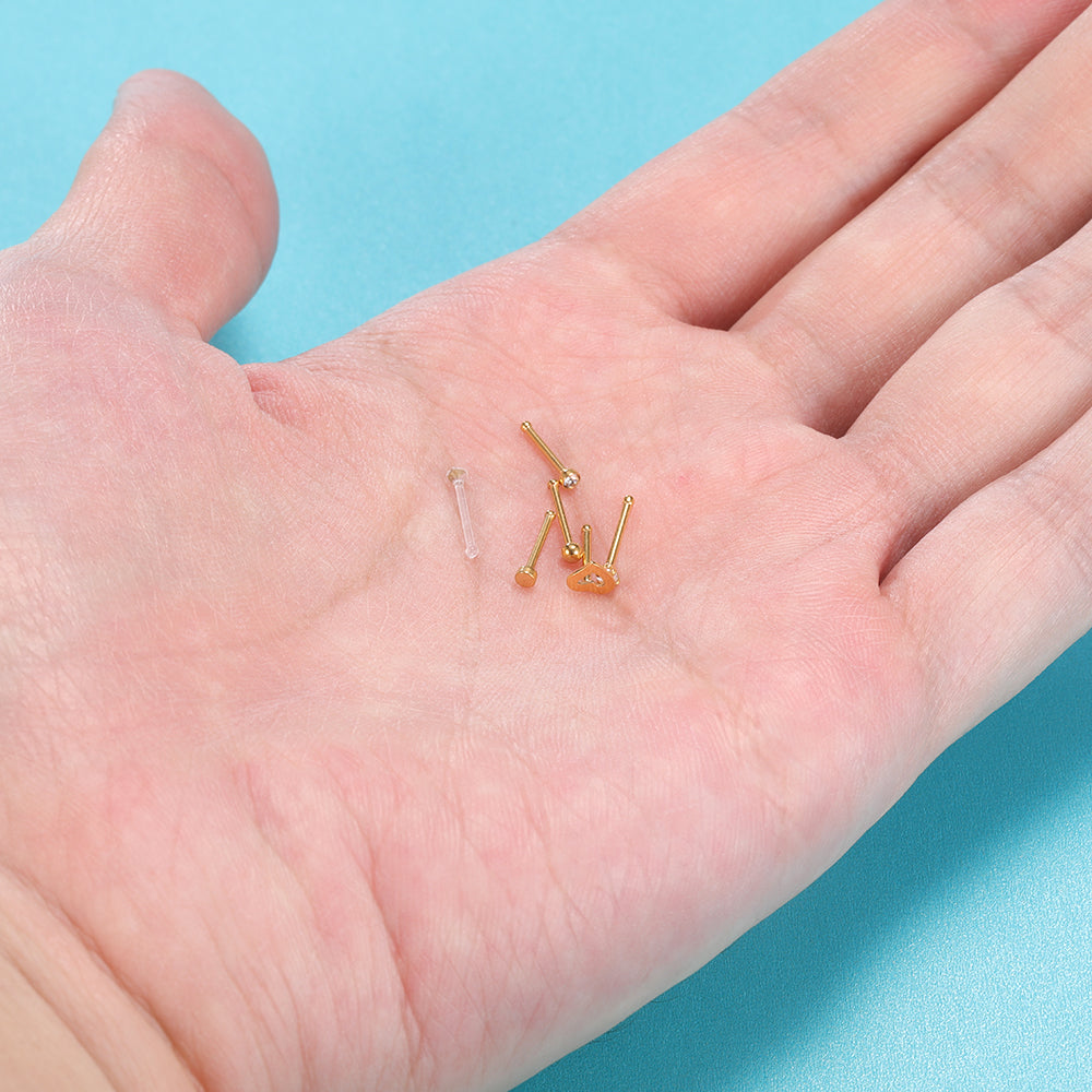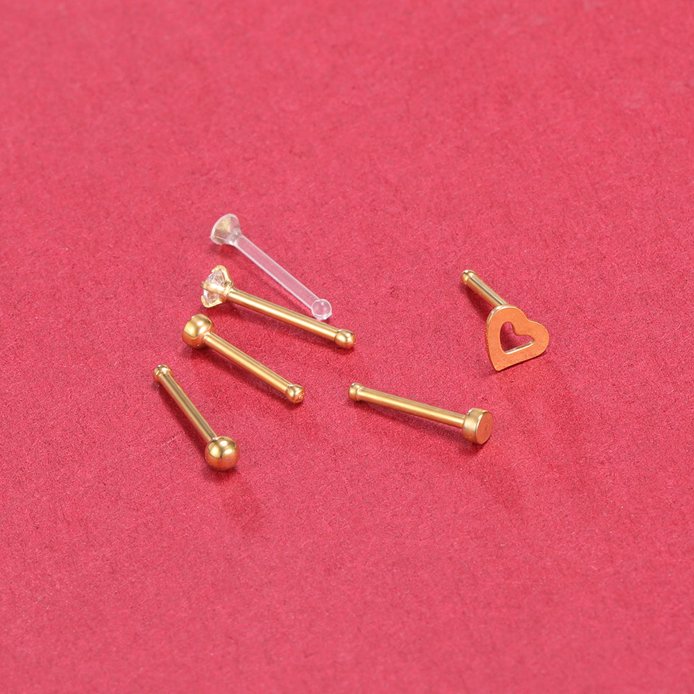 6Pcs/Set Gold Nose Stud Rings Clear Bioflex Nose Bone Piercing-Economic Set