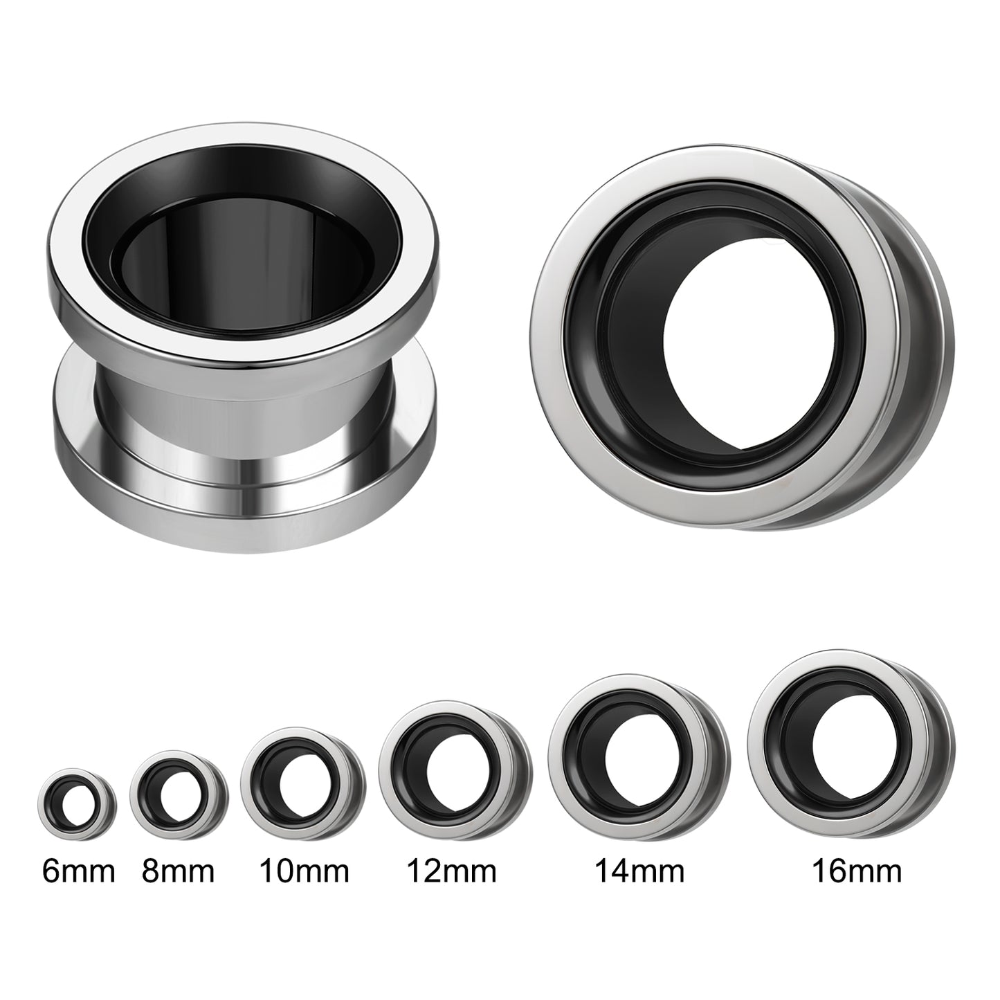 1 Pair 6-16mm Ear Plug Tunnel Double Flare Ear Gauges Silver&Black Ear Expanders