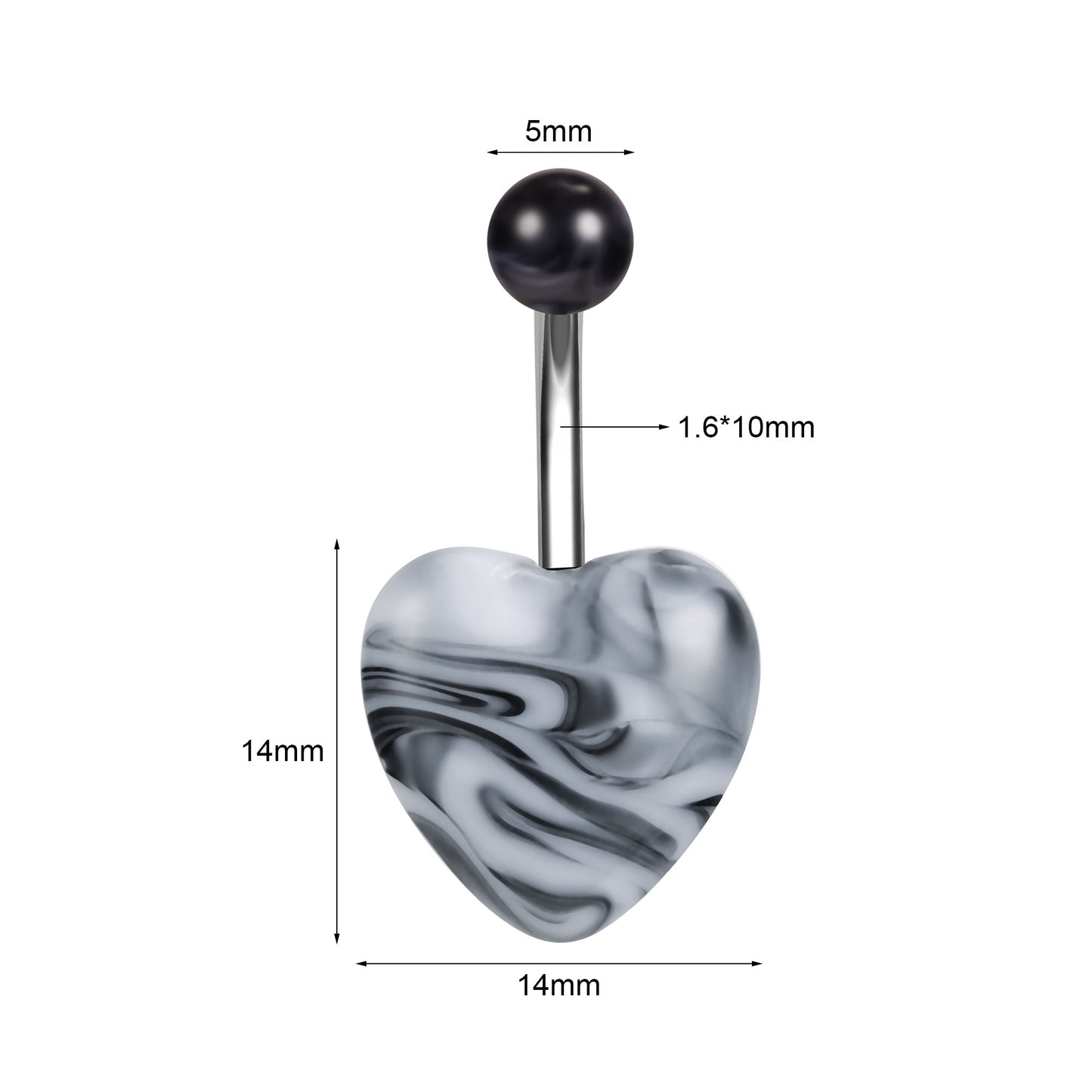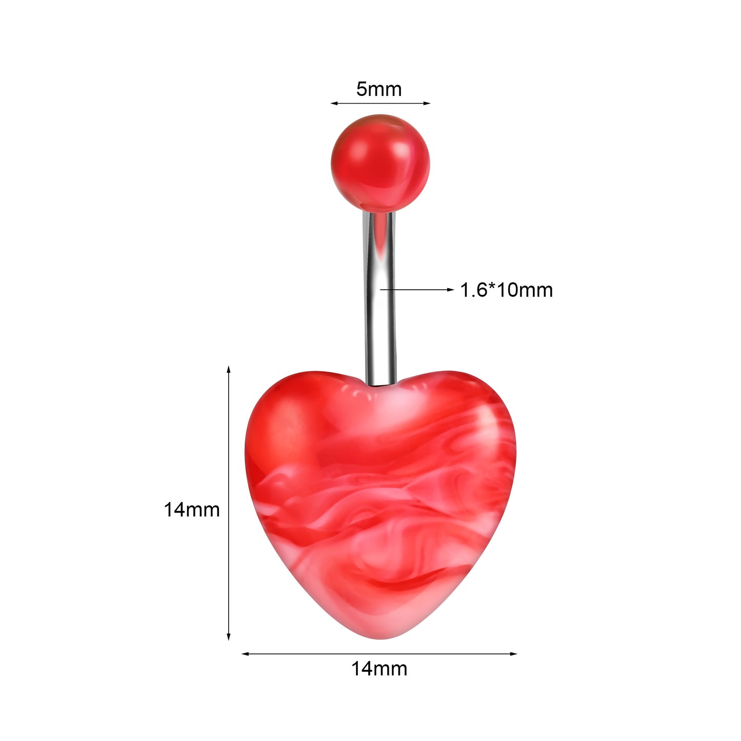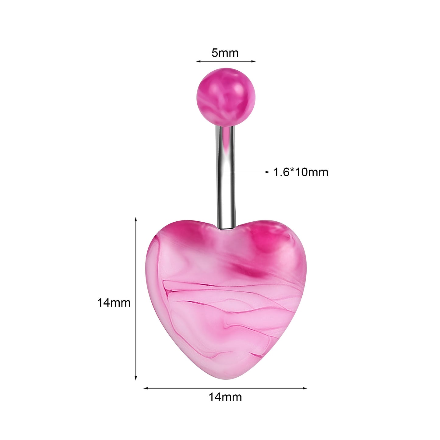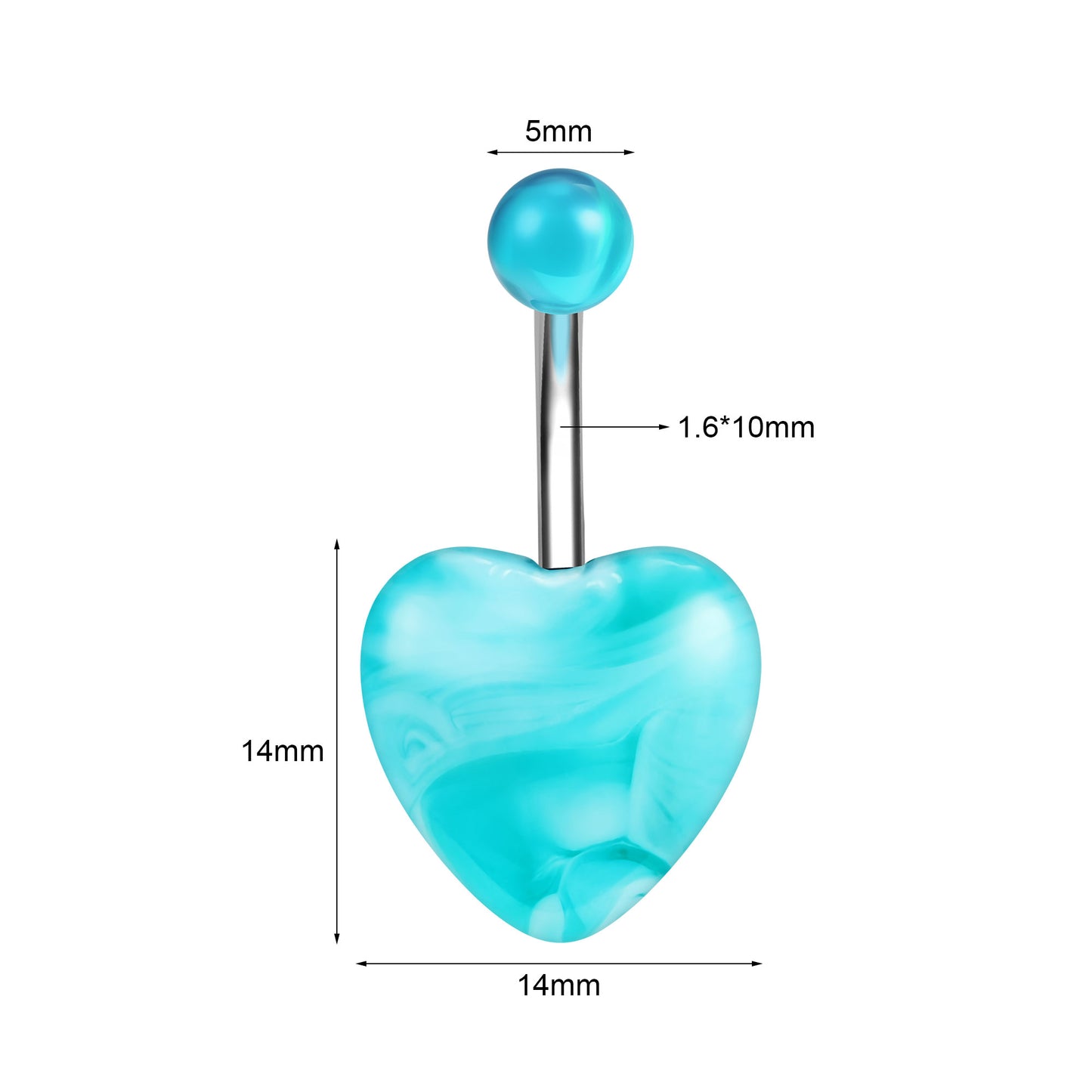 14G Heart Belly Navel Rings Acrylic Belly Button Rings Barbell Piercing