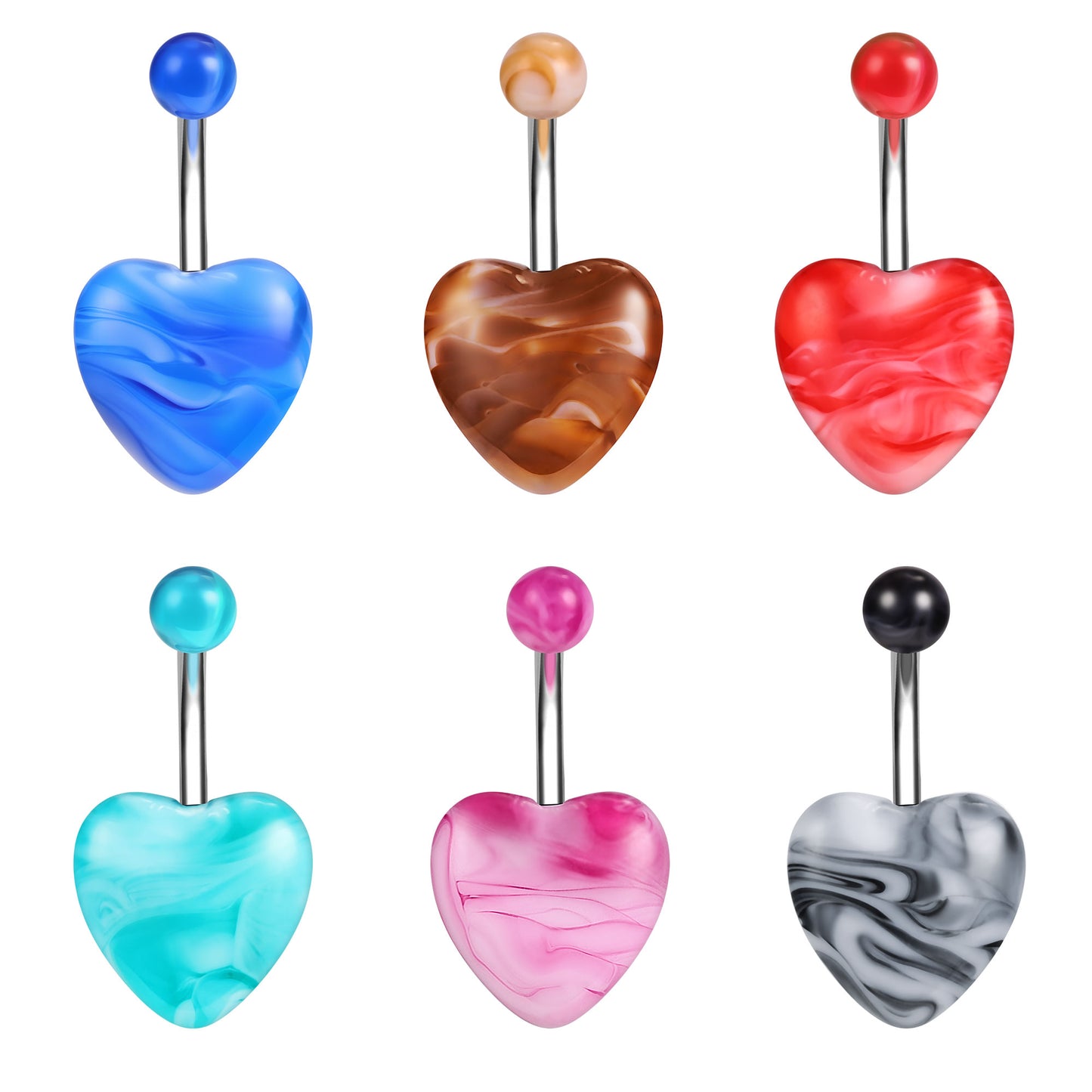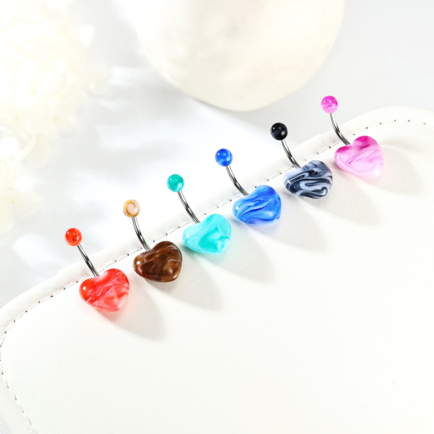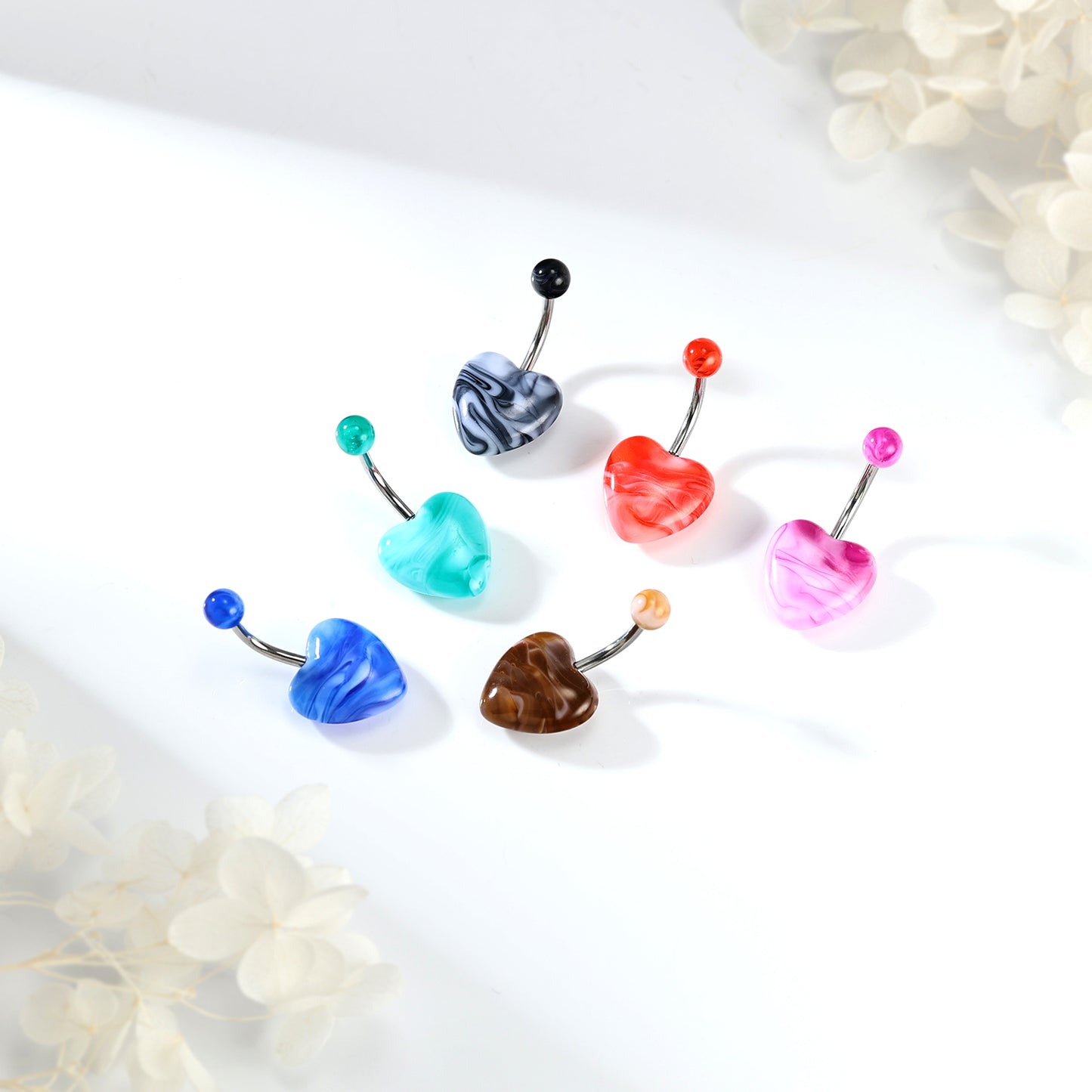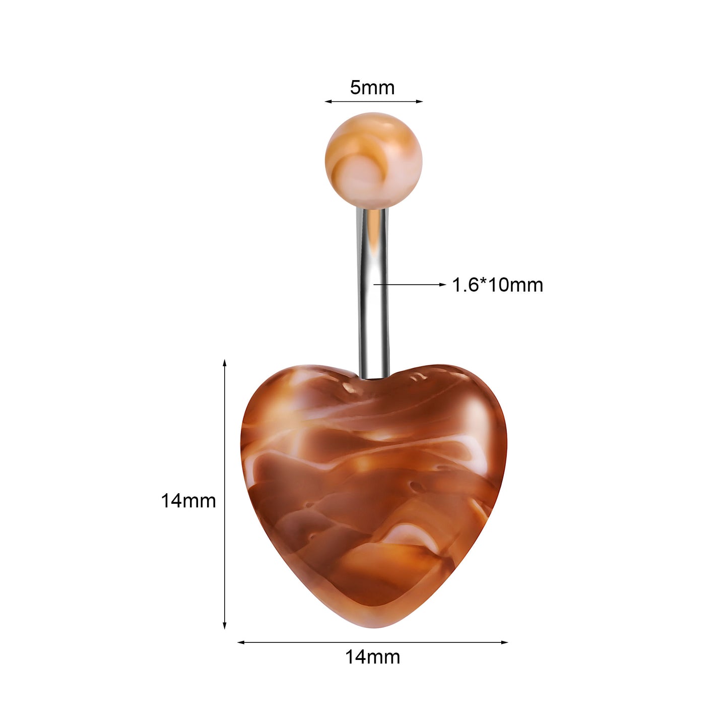 14G Heart Belly Navel Rings Acrylic Belly Button Rings Barbell Piercing