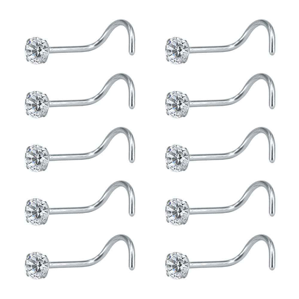 10Pcs/Set 20g Nose Studs Piercing Surgical Steel Screws Nose Rings-Economic Set