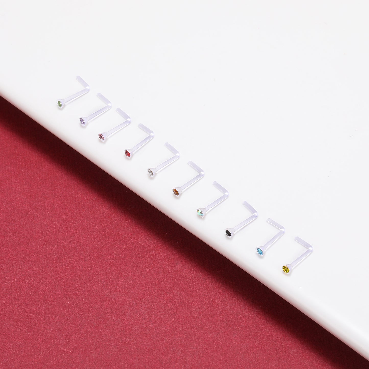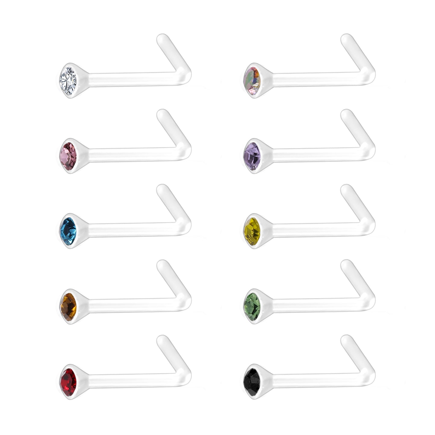 10Pcs/Set Clear Bioflex Nose Rings Piercing Multicolor Nose Studs L Shaped-Economic Set