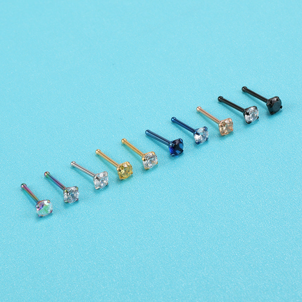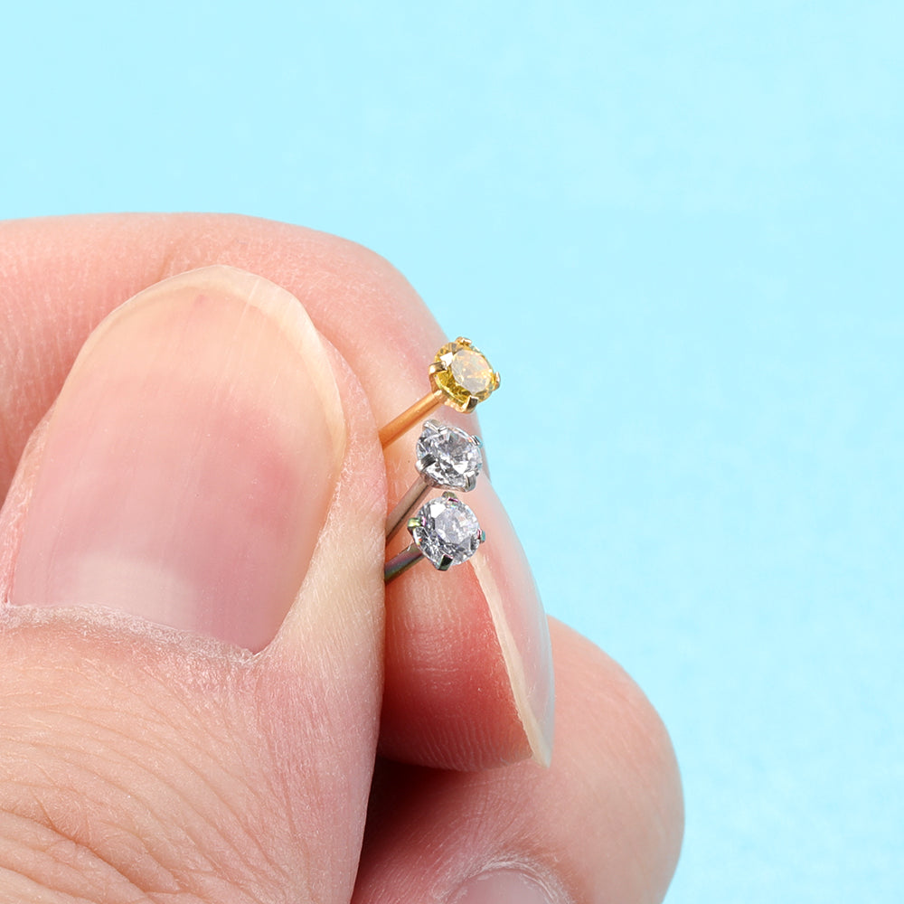 - Hook Type: Nose Bone, Stone: prong setting with Cubic Zirconia-3mm.