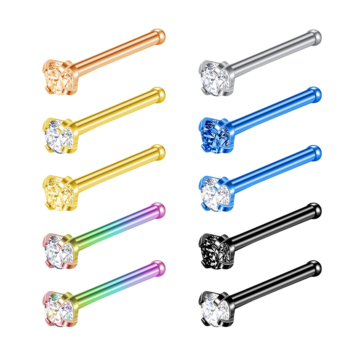 10Pcs/Set Multicolor Nose Studs Zirconia Nose Bone Piercings-Economic Set