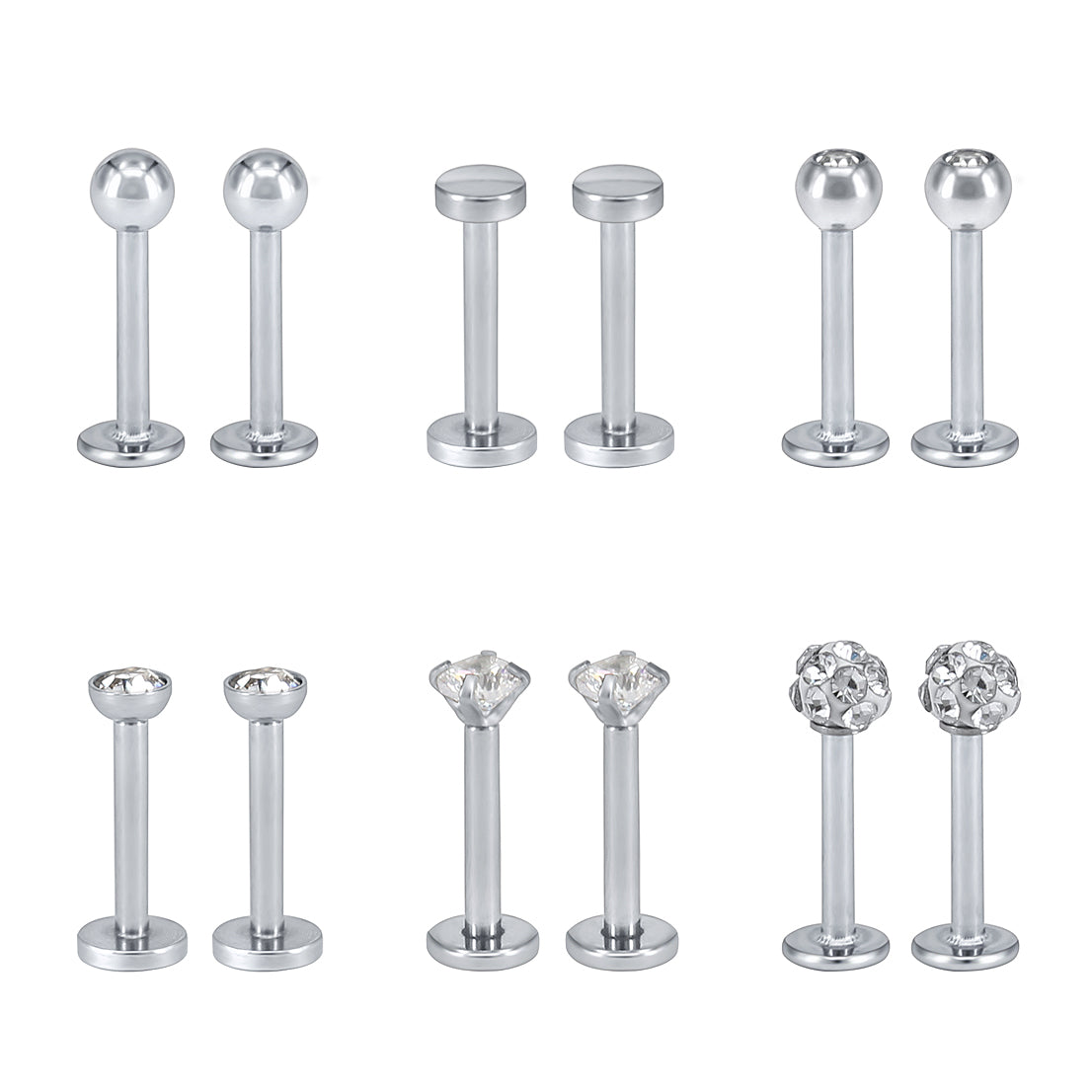 12Pcs/set 16G Crystal Ball Labret Rings Claws Monroe Conch Helix Cartilage Lip Piercing-Set