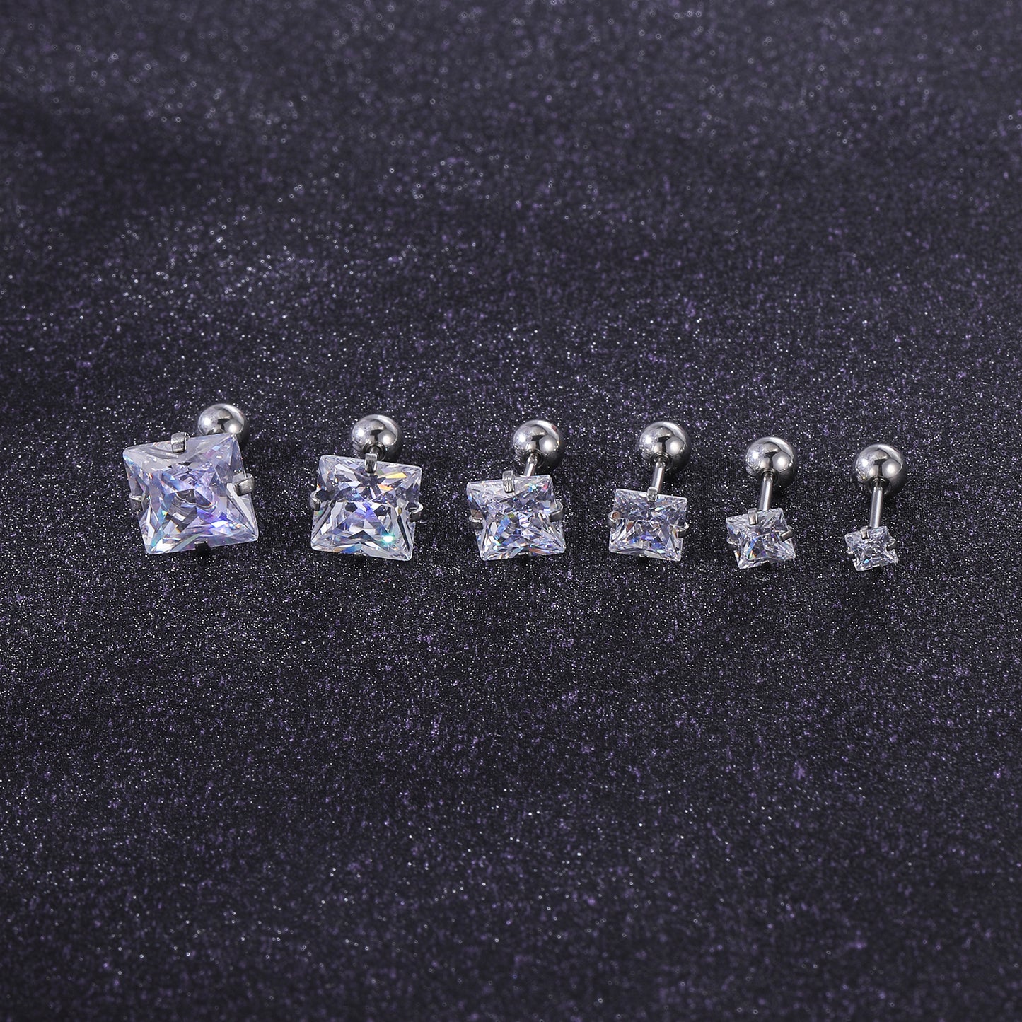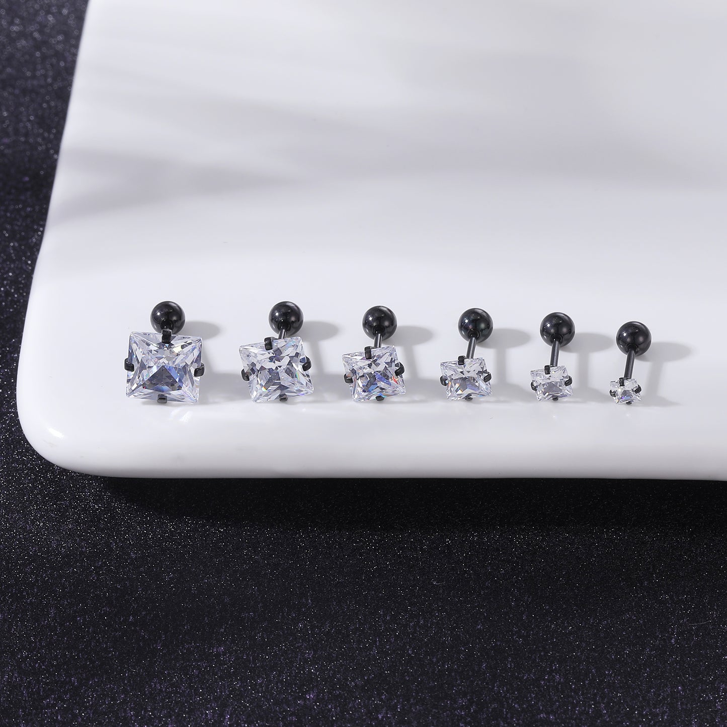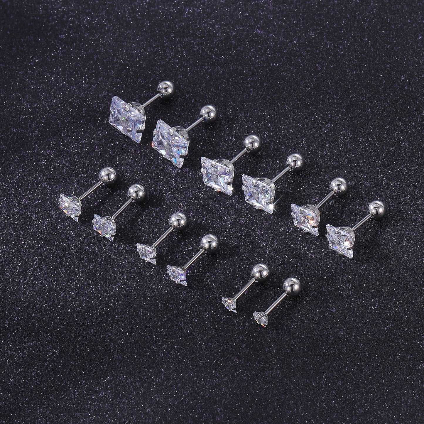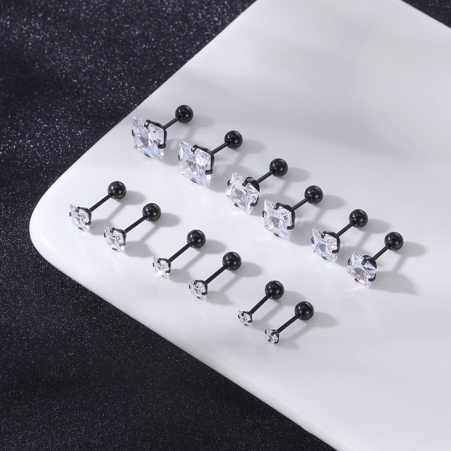12Pcs/Set Square Crystal Stud Earring Silver Black Claw Ear Stud-Economic Set