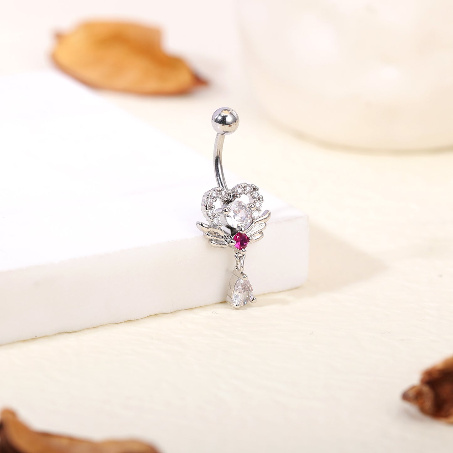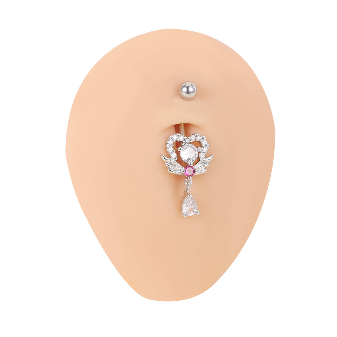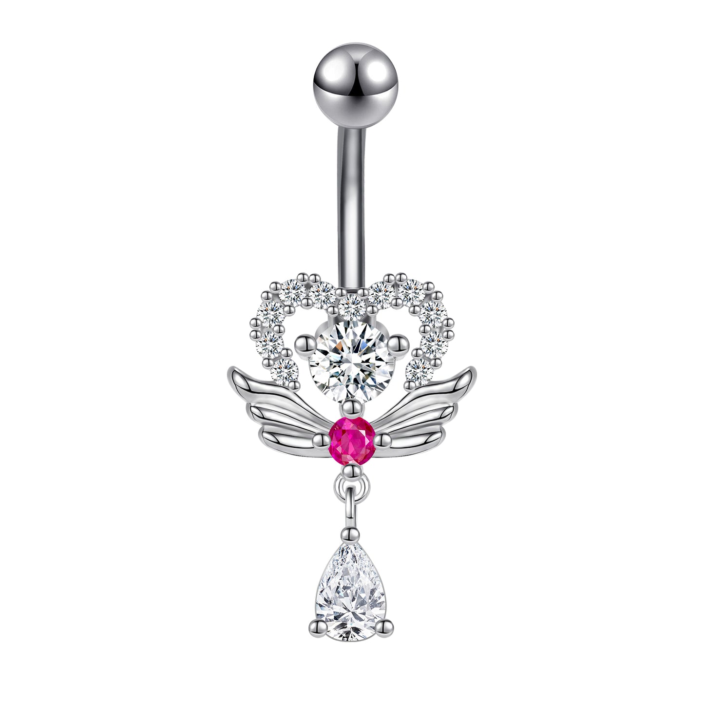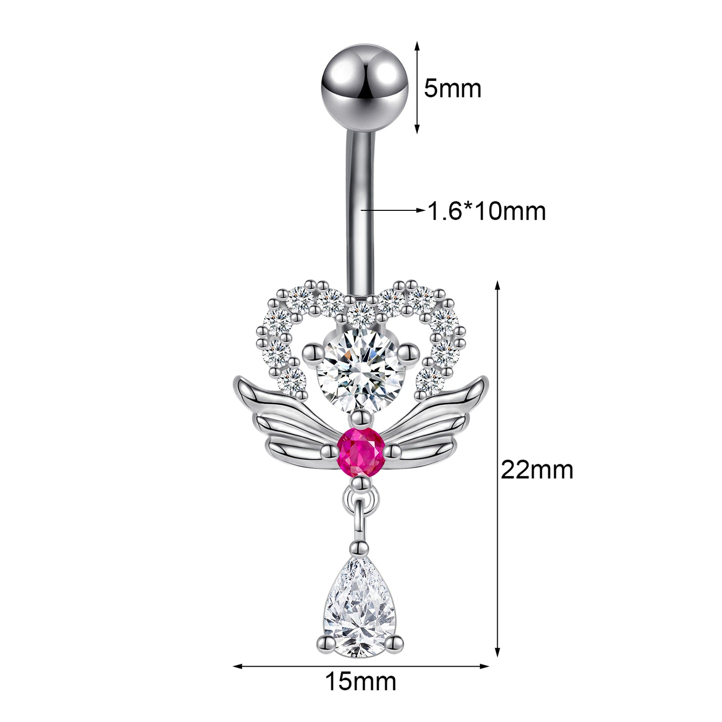 14G Angel Wings Belly Navel Rings Zirconia Drop Dangling Belly Button Rings