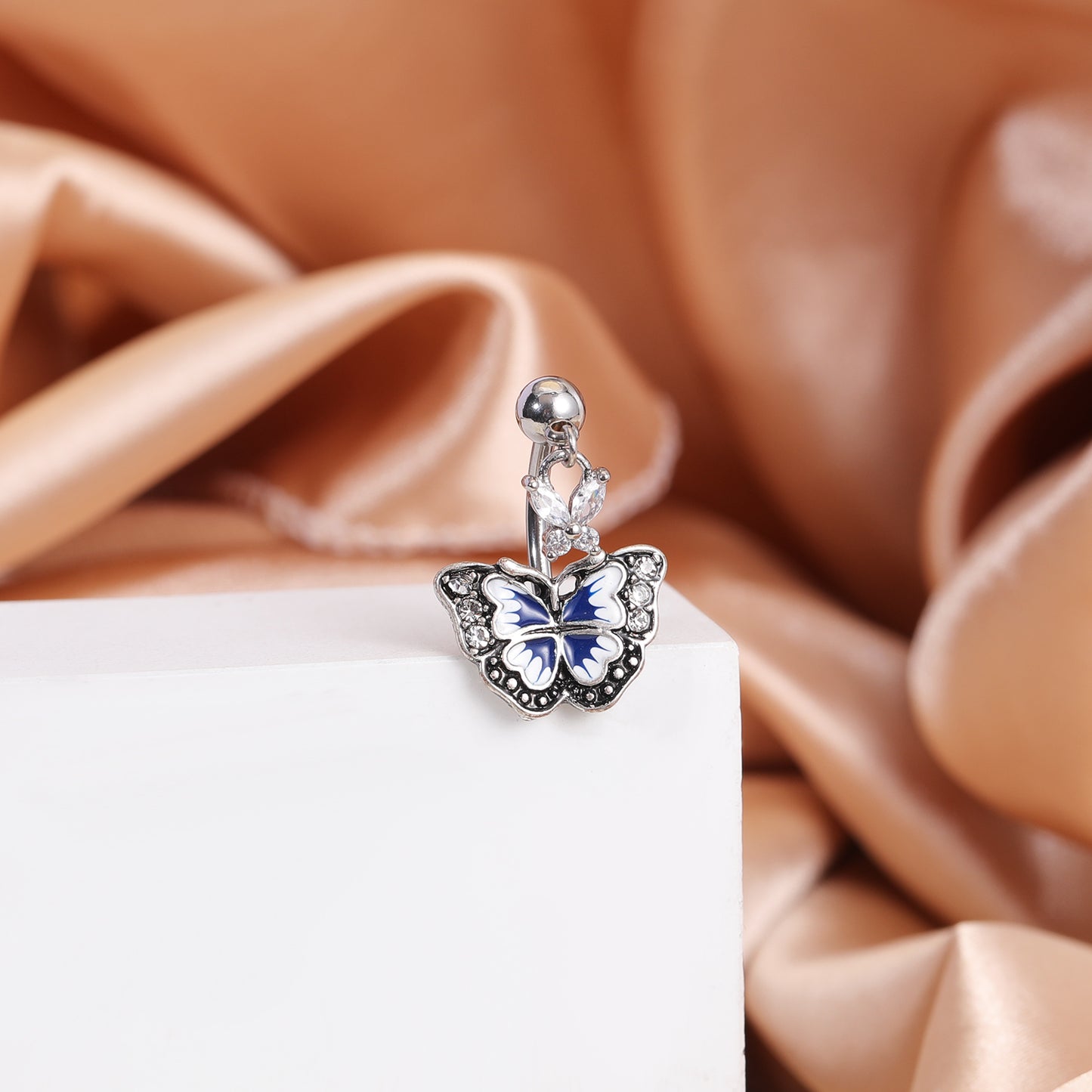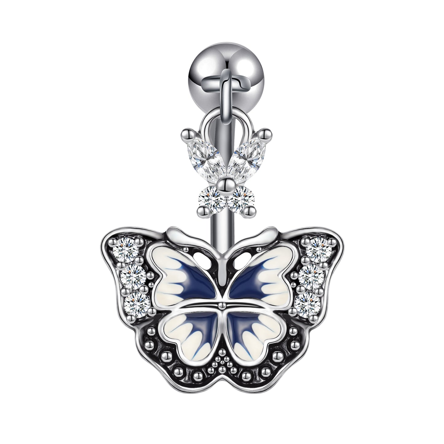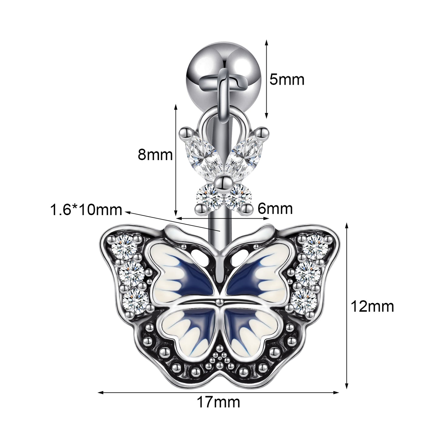 14G Butterfly Belly Navel Rings Bling Crystal Belly Button Rings