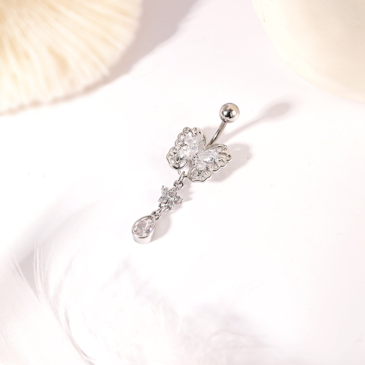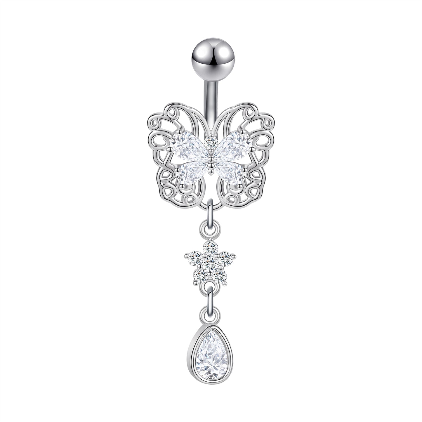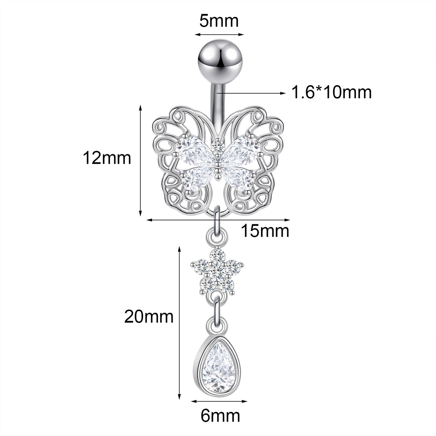 14G Butterfly Belly Navel Rings Crystal Drop Dangling Belly Button Rings