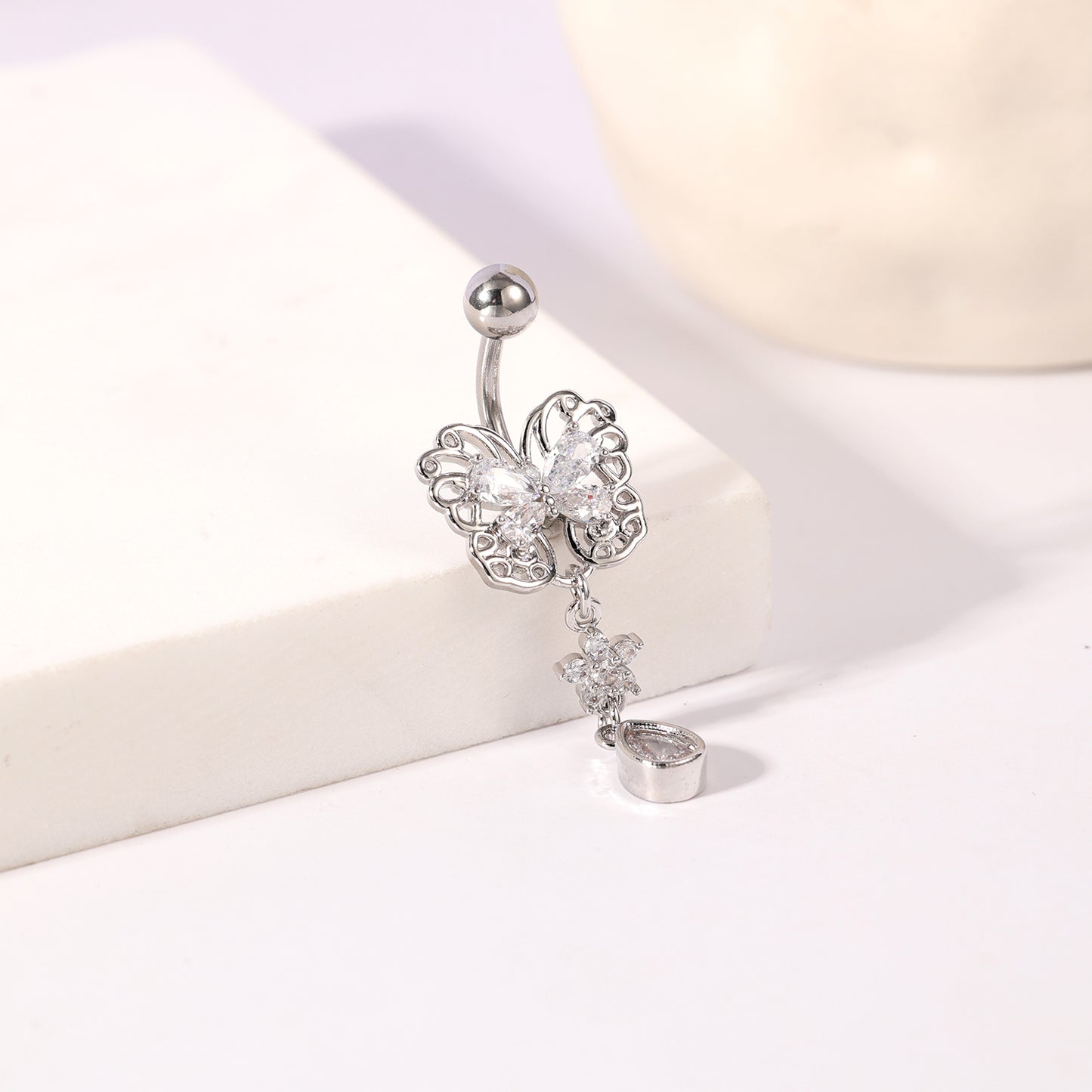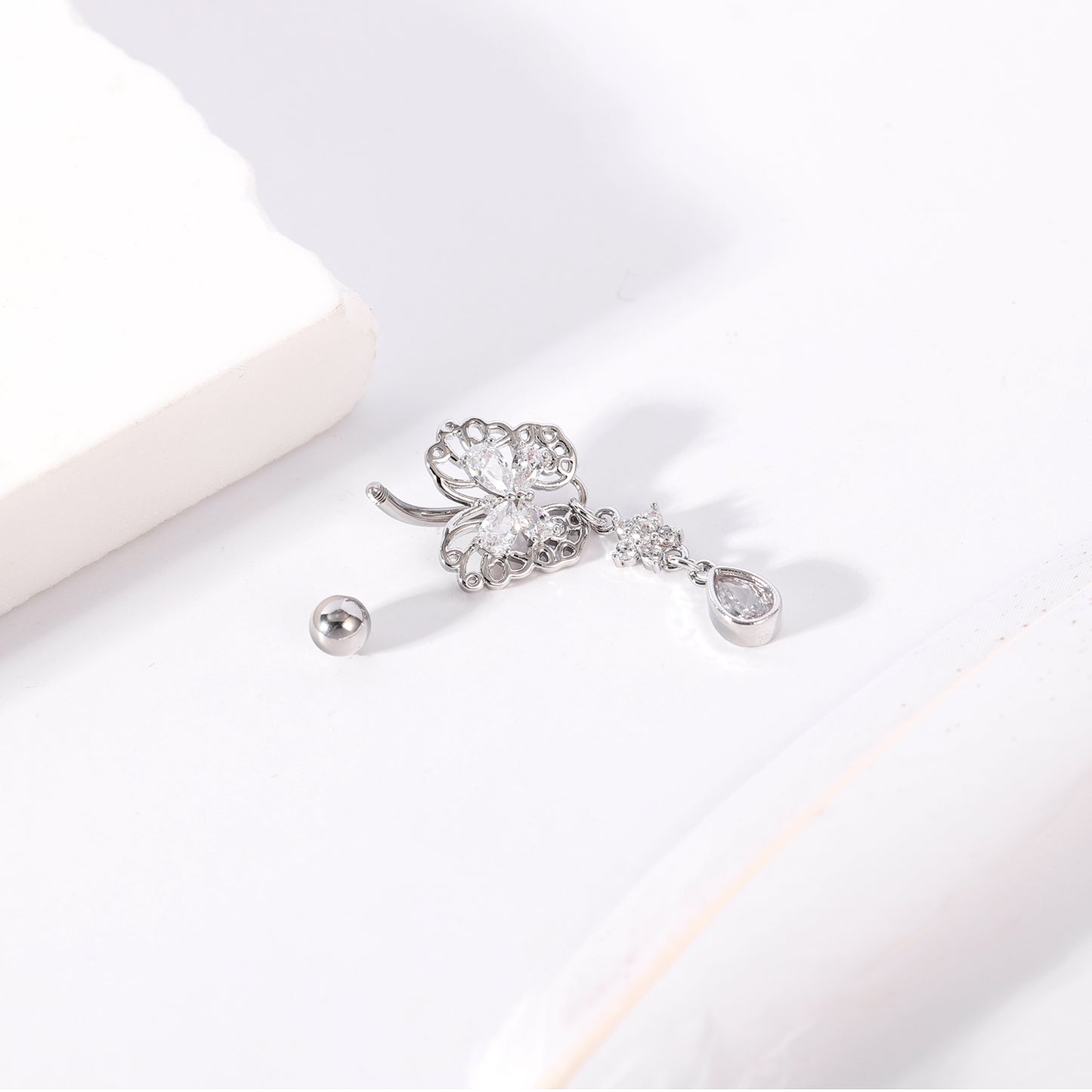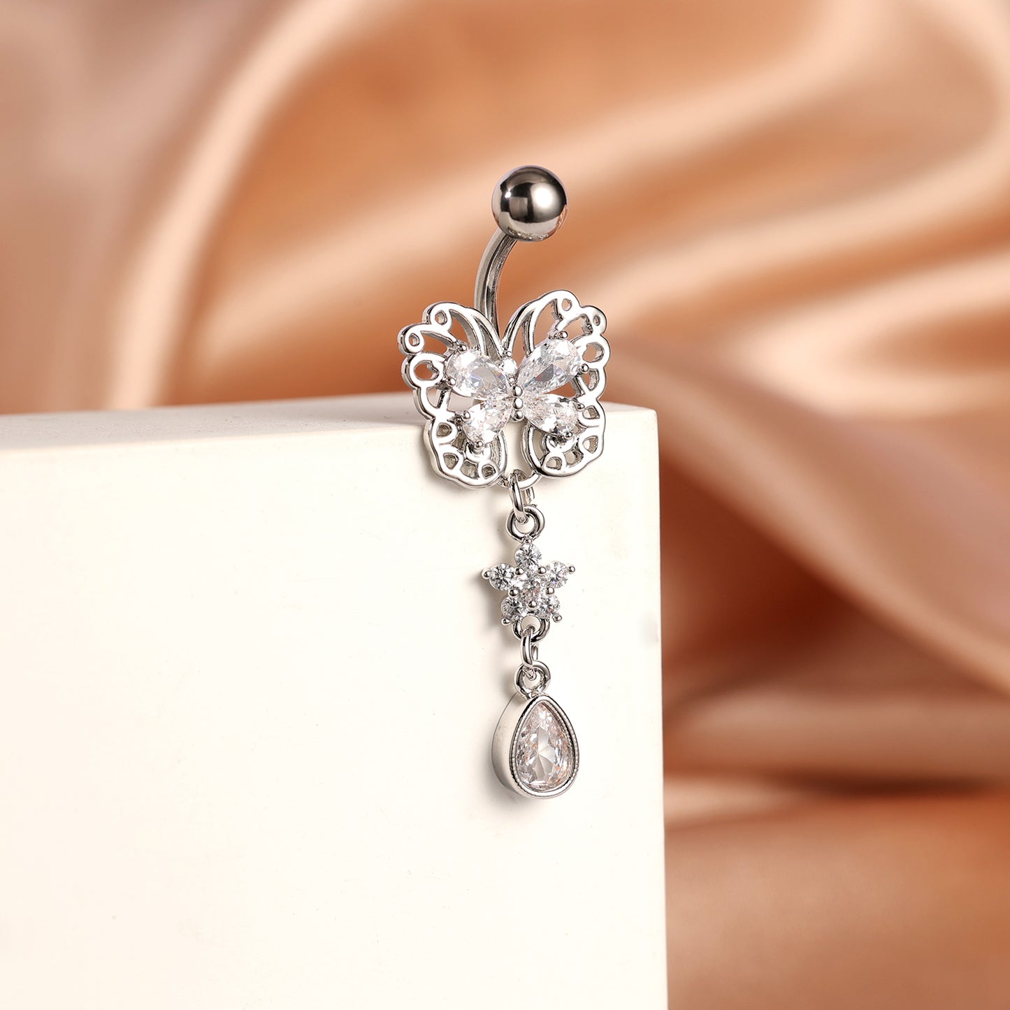 14G Butterfly Belly Navel Rings Crystal Drop Dangling Belly Button Rings