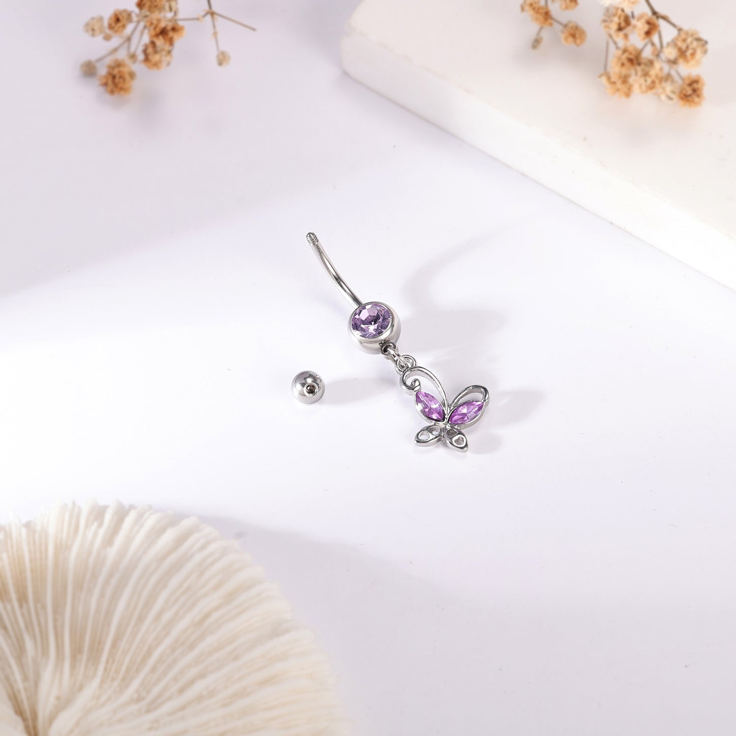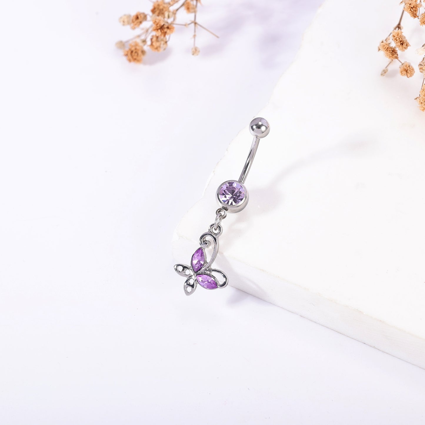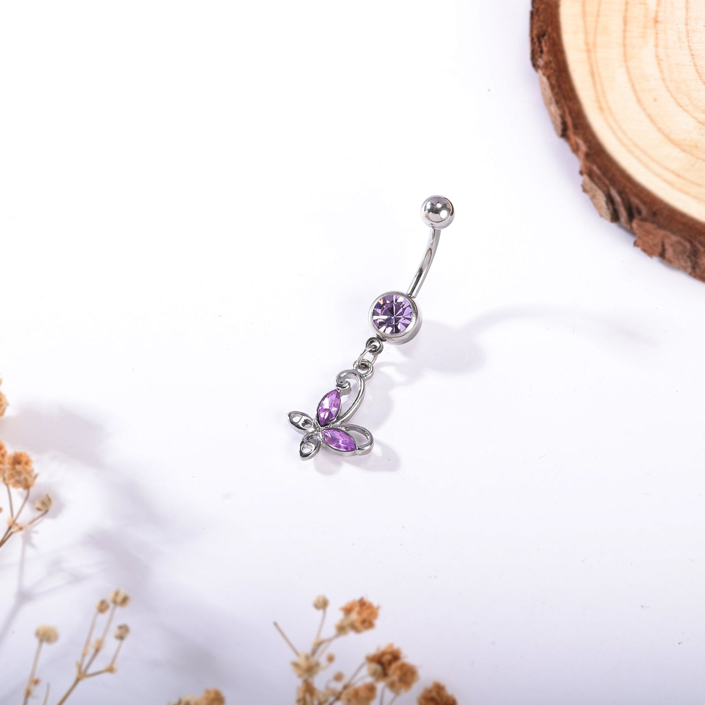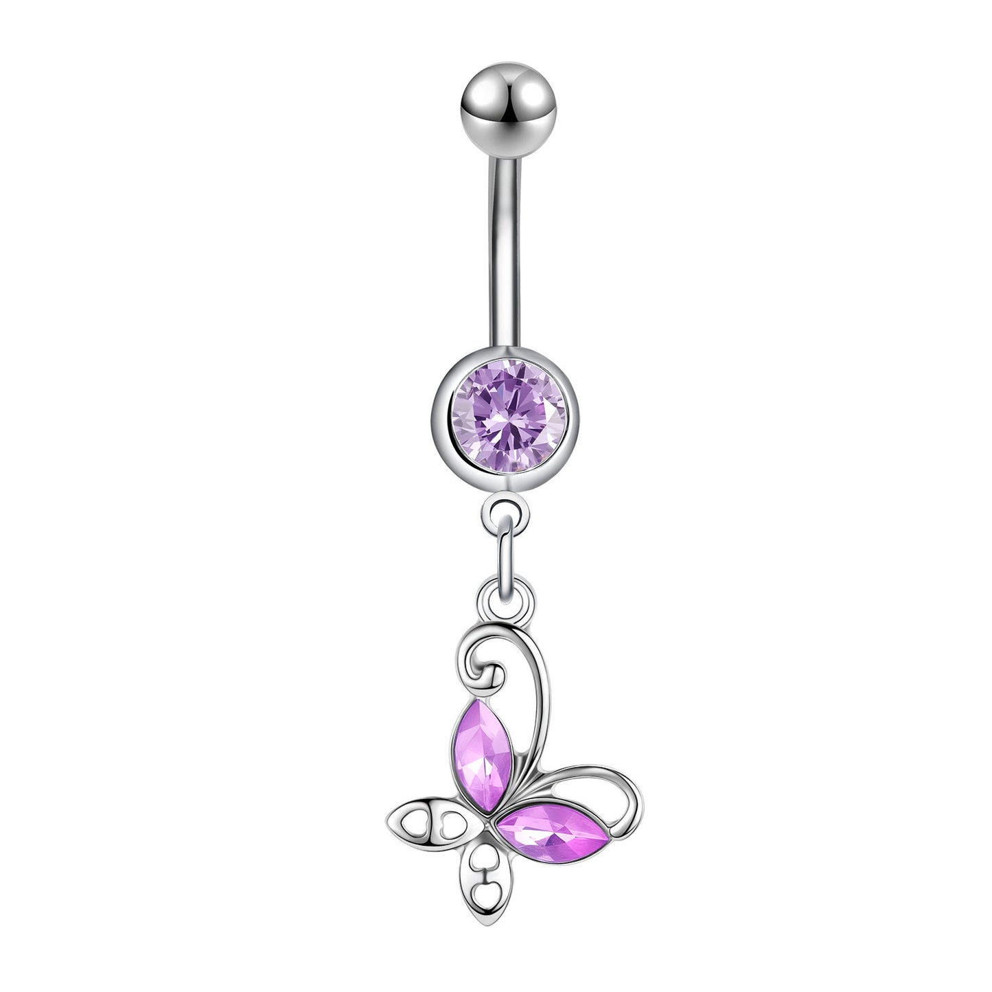 14G Butterfly Dangle Belly Navel Rings Purple Crystal Belly Button Rings