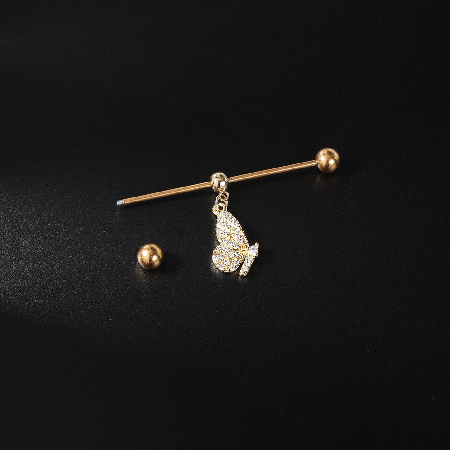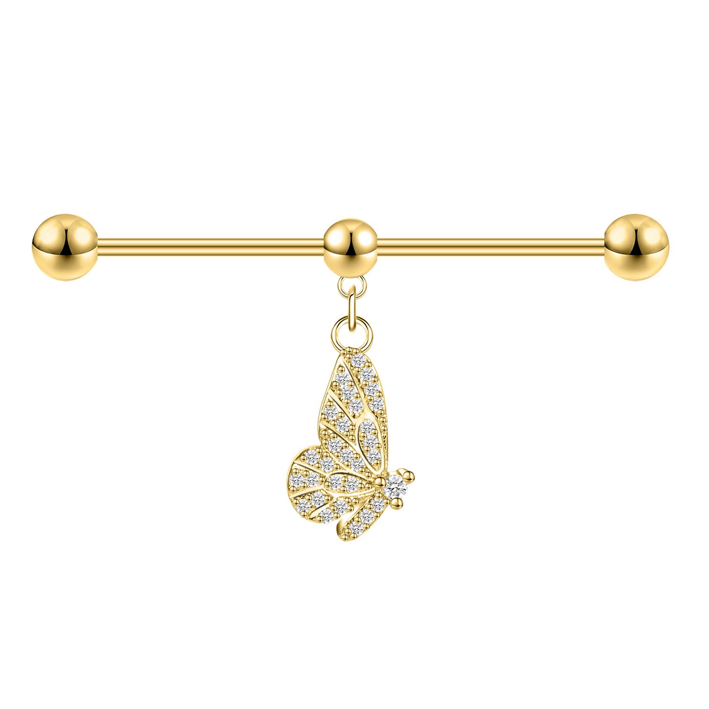 14G Butterfly Industrial Barbell Gold Color Helix Cartilage Piercing