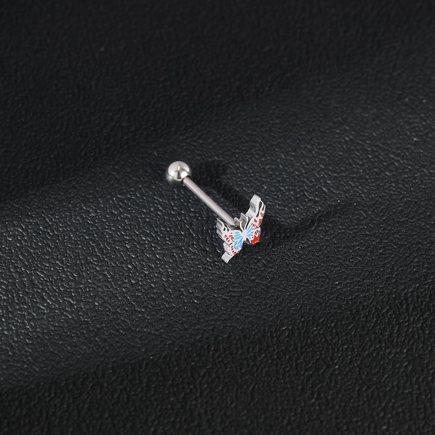 14g Butterfly Tongue Ring Threaded Tongue Piercing Barbell Jewelry