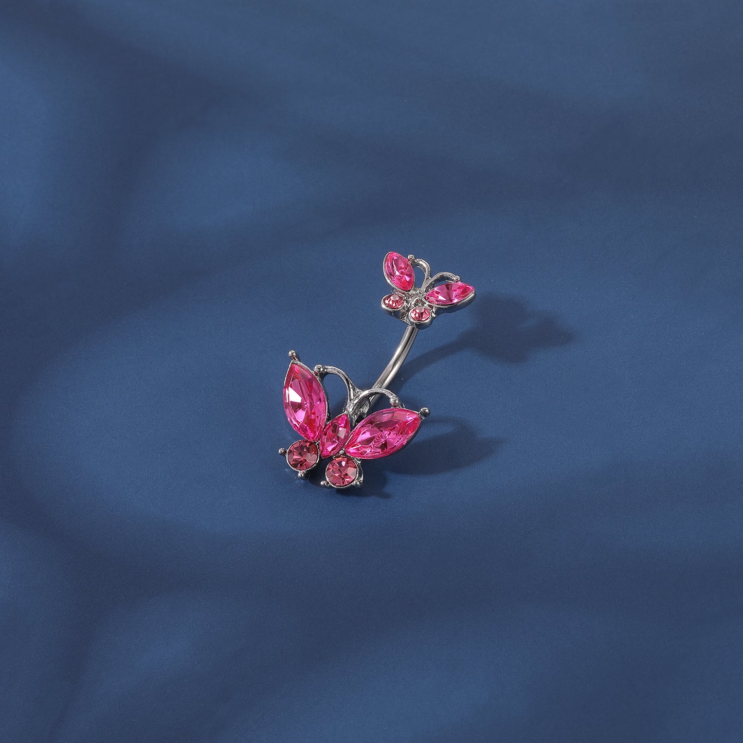 14g Double Butterfly Belly Button Ring Crystal Cute Navel Piercing Jewelry