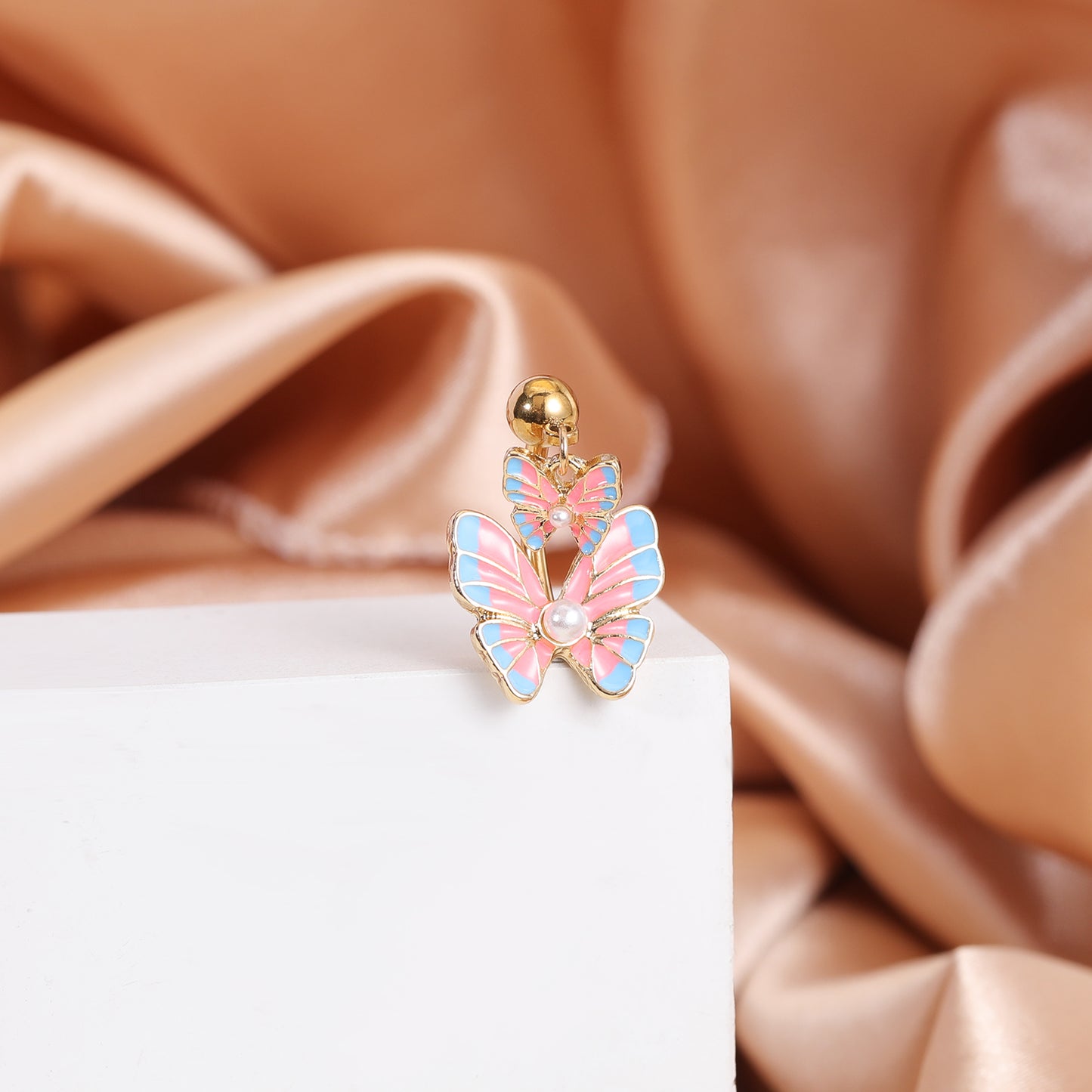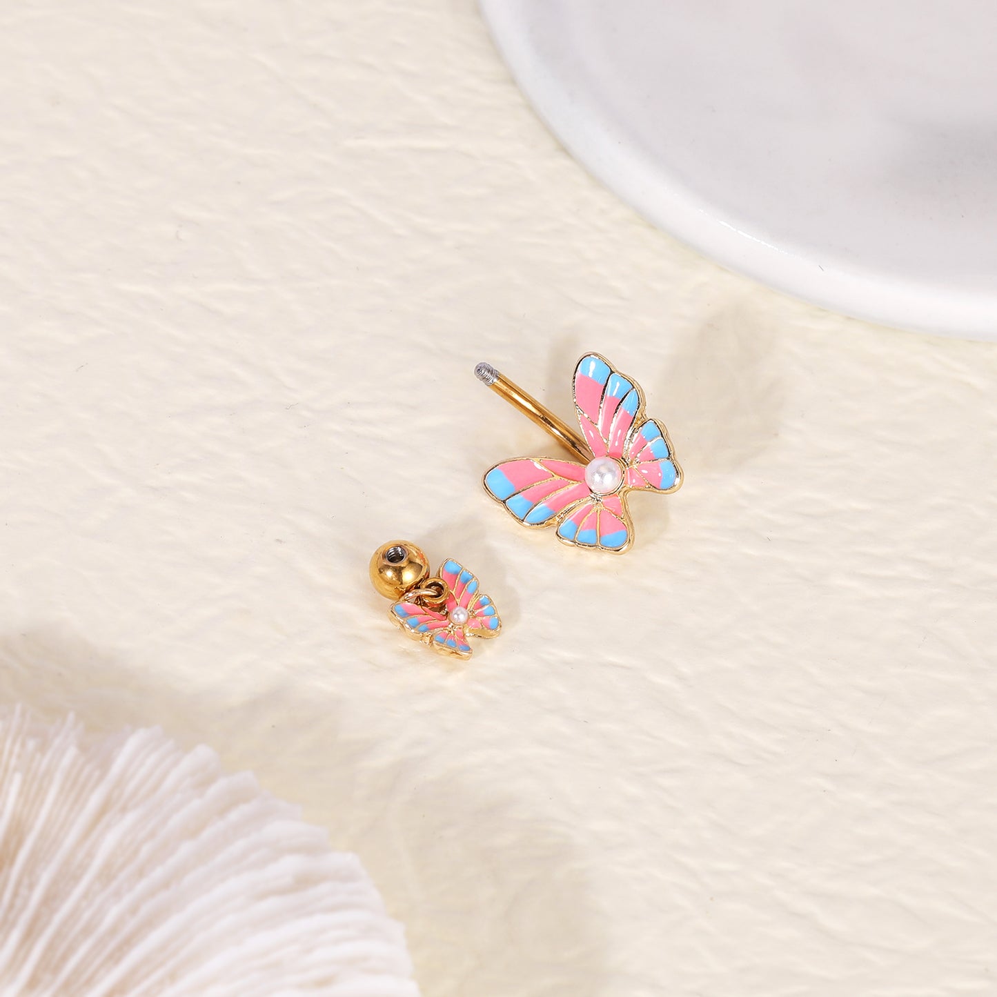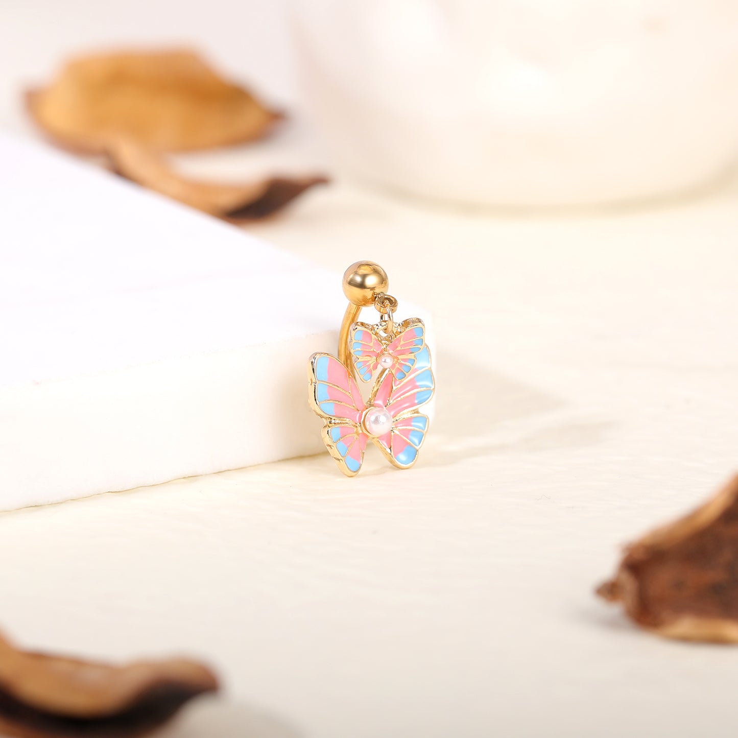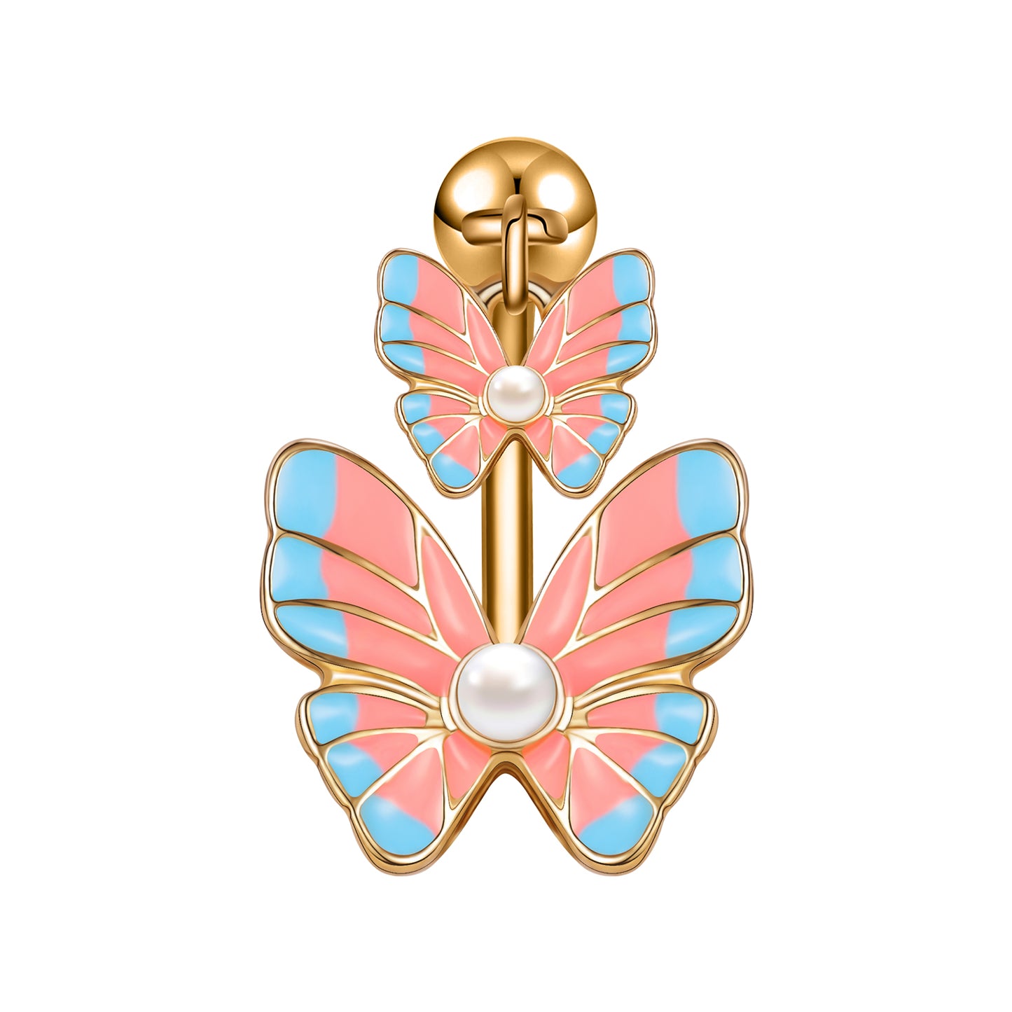 14G Double Butterfly Belly Navel Rings White Pearl Belly Button Rings