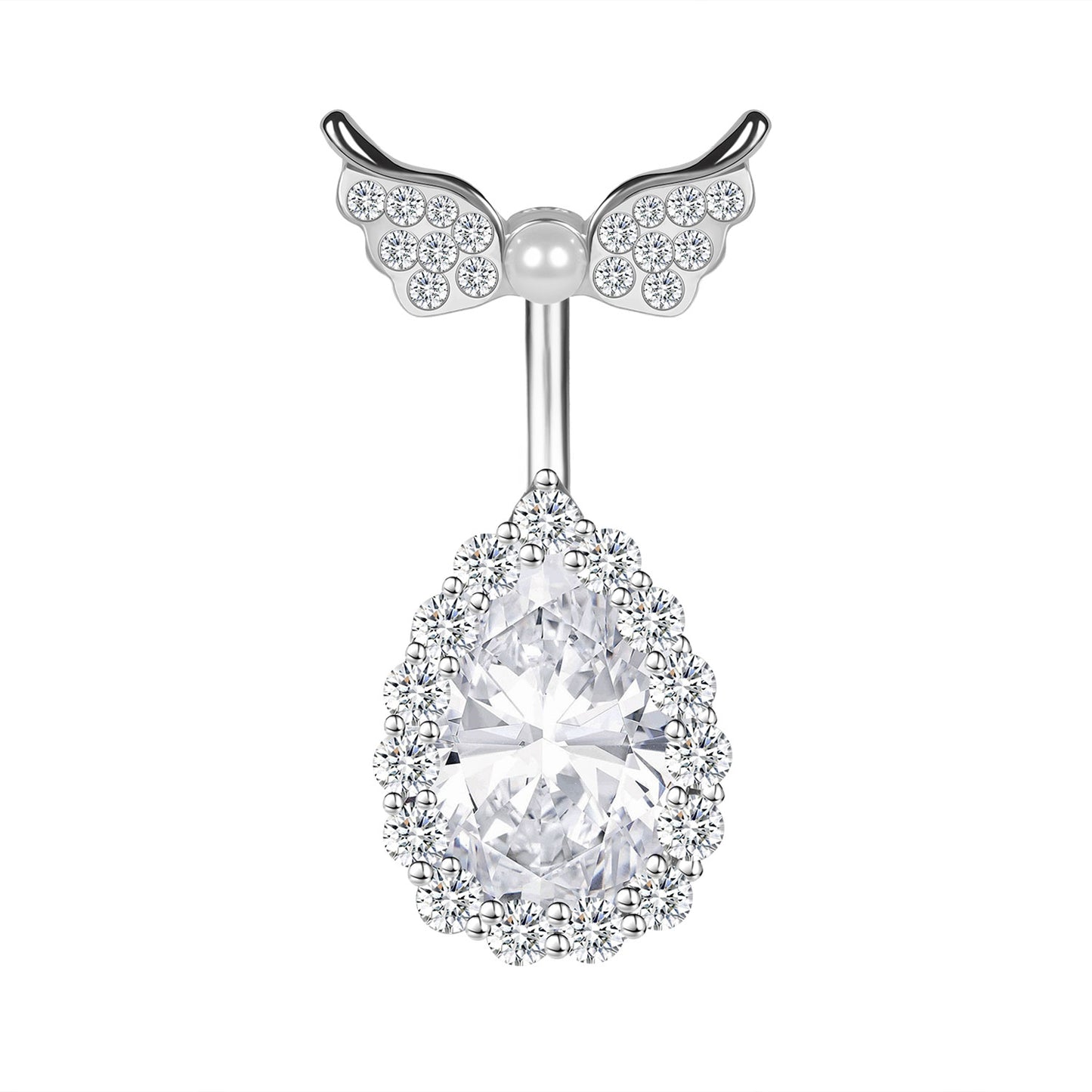 14G Double Wing Belly Navel Rings Cubic Zirconia Belly Button Rings
