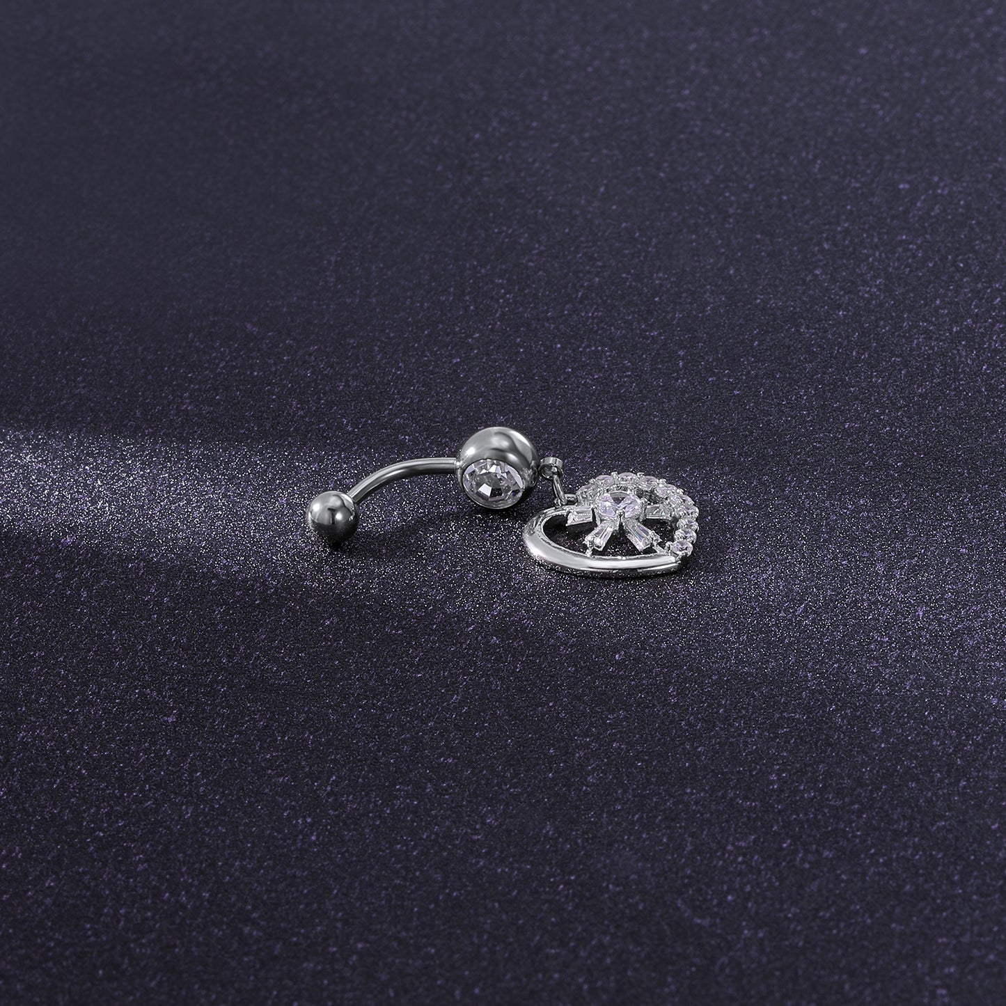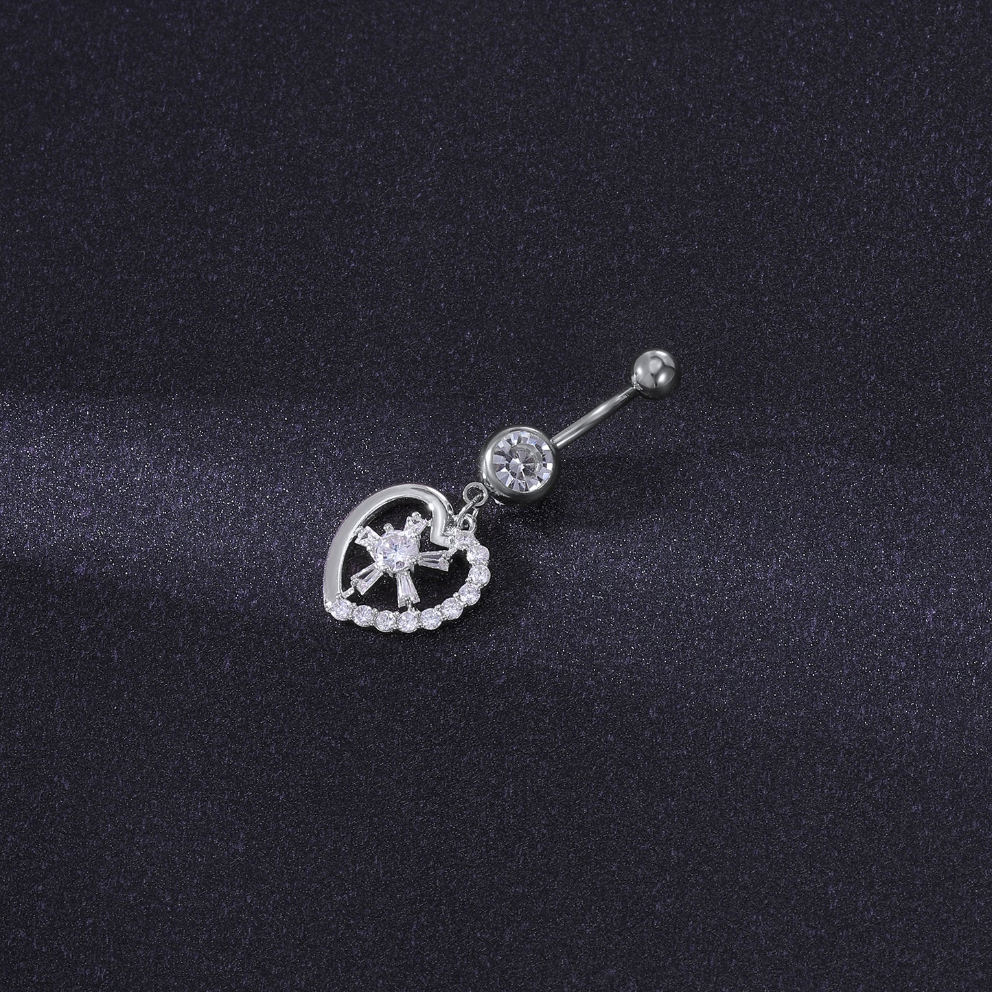 - Belly Bar thickness : 14 gauge (1.6mm), bar length: 10mm,Top Ball Size: 5mm, Bottom Zircon Size : 8mm, Dangle Heart: 16*17mm.