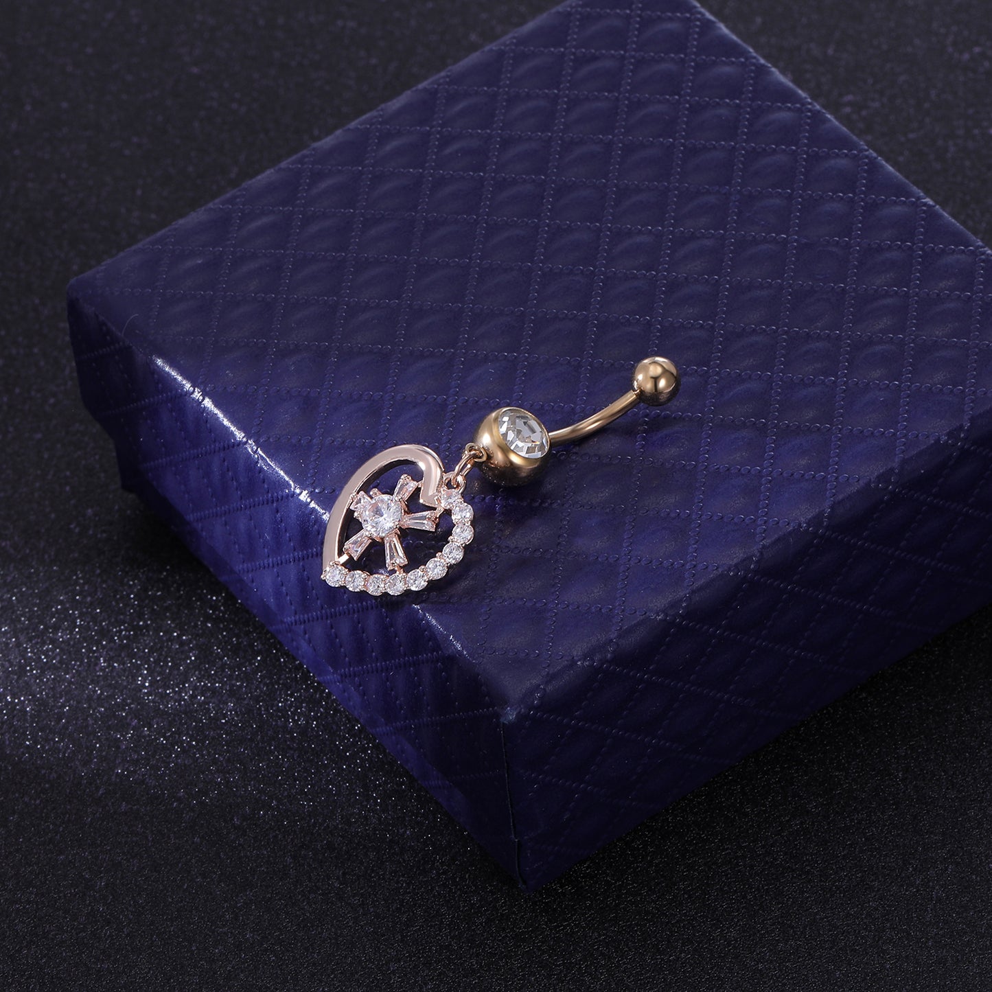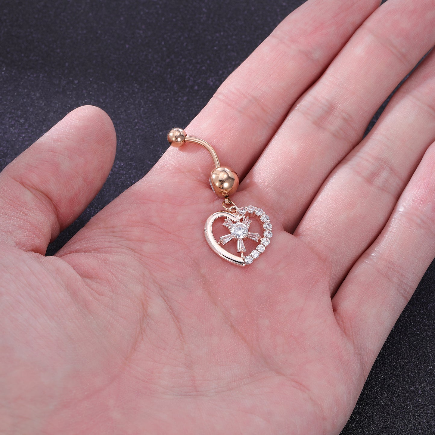 - Navel Ring Design: rose gold drop dangle heart shaped with flowers zirconia, classial style.