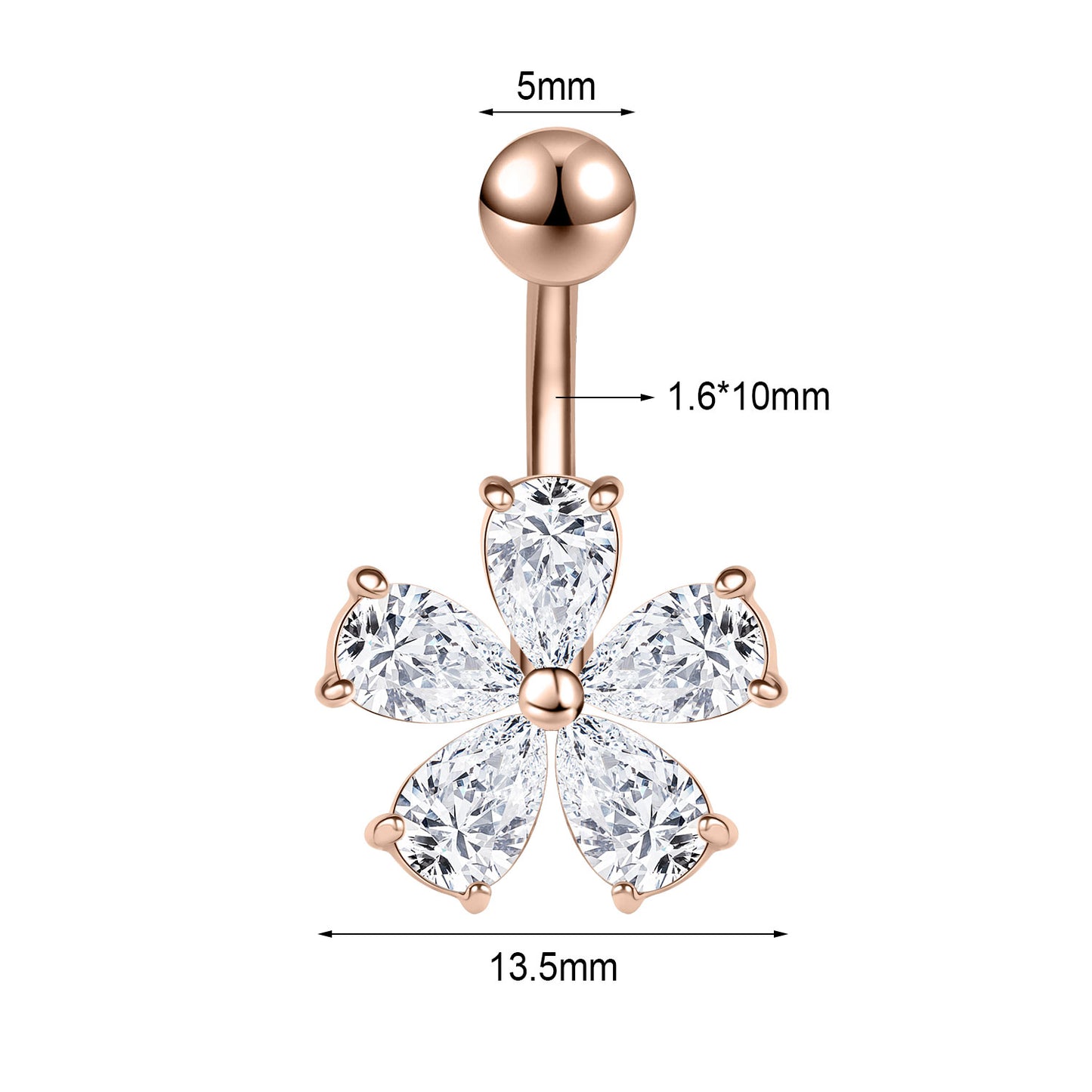 14G Flower Belly Navel Rings AAA Cubic Zirconia Belly Button Rings