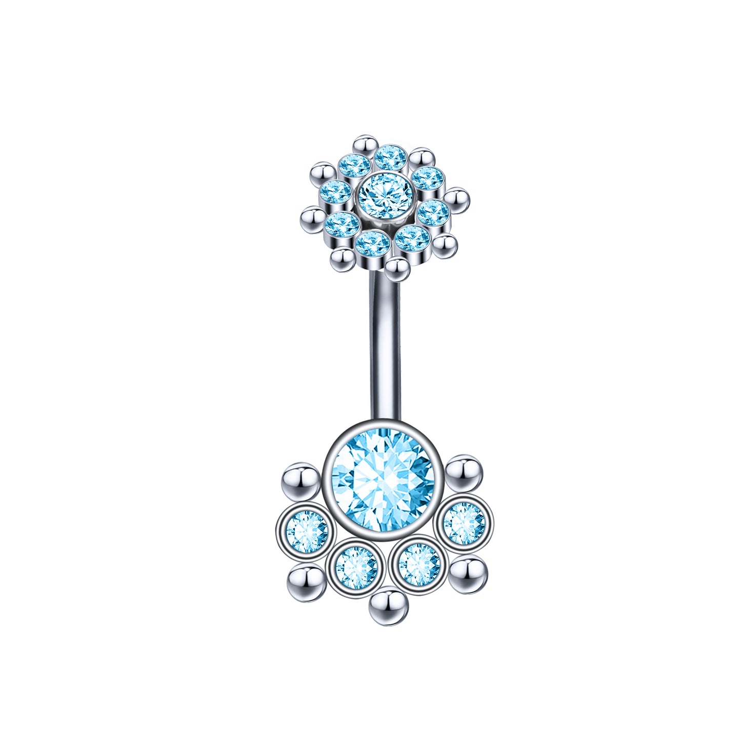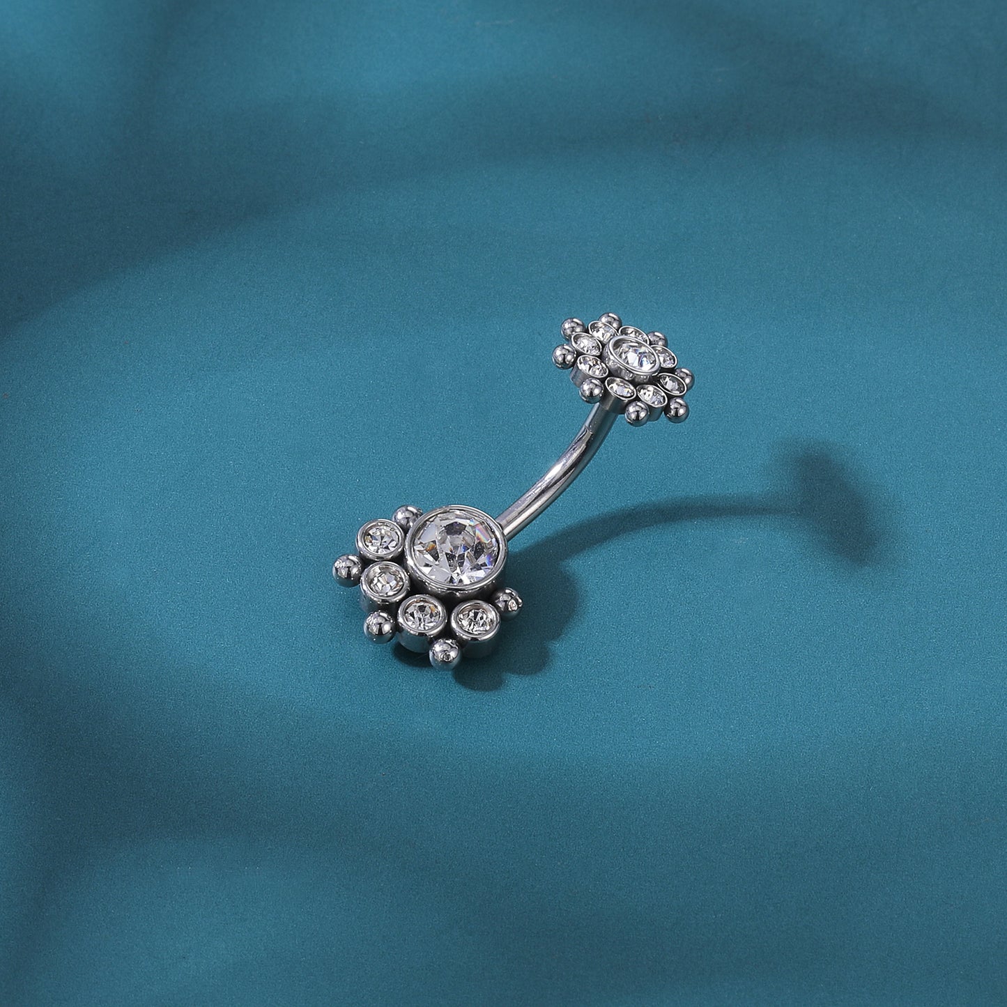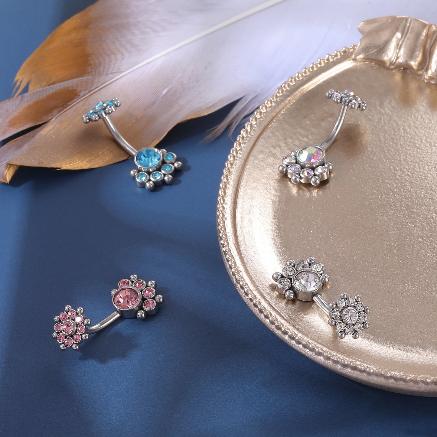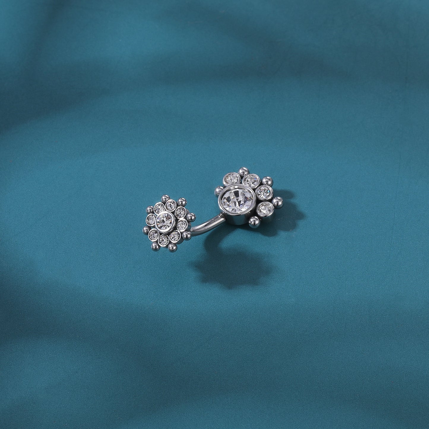 - Navel Ring Design: Sun Flower Zirconia Footprint Stainless Steel Ball Belly Button Piercing.
