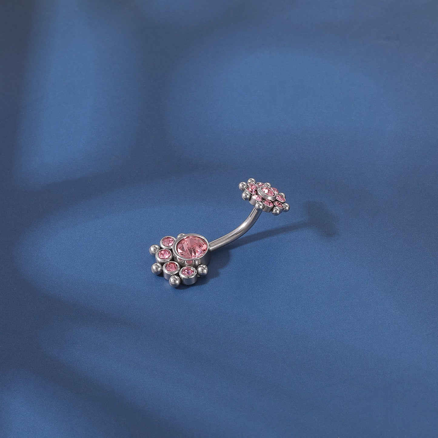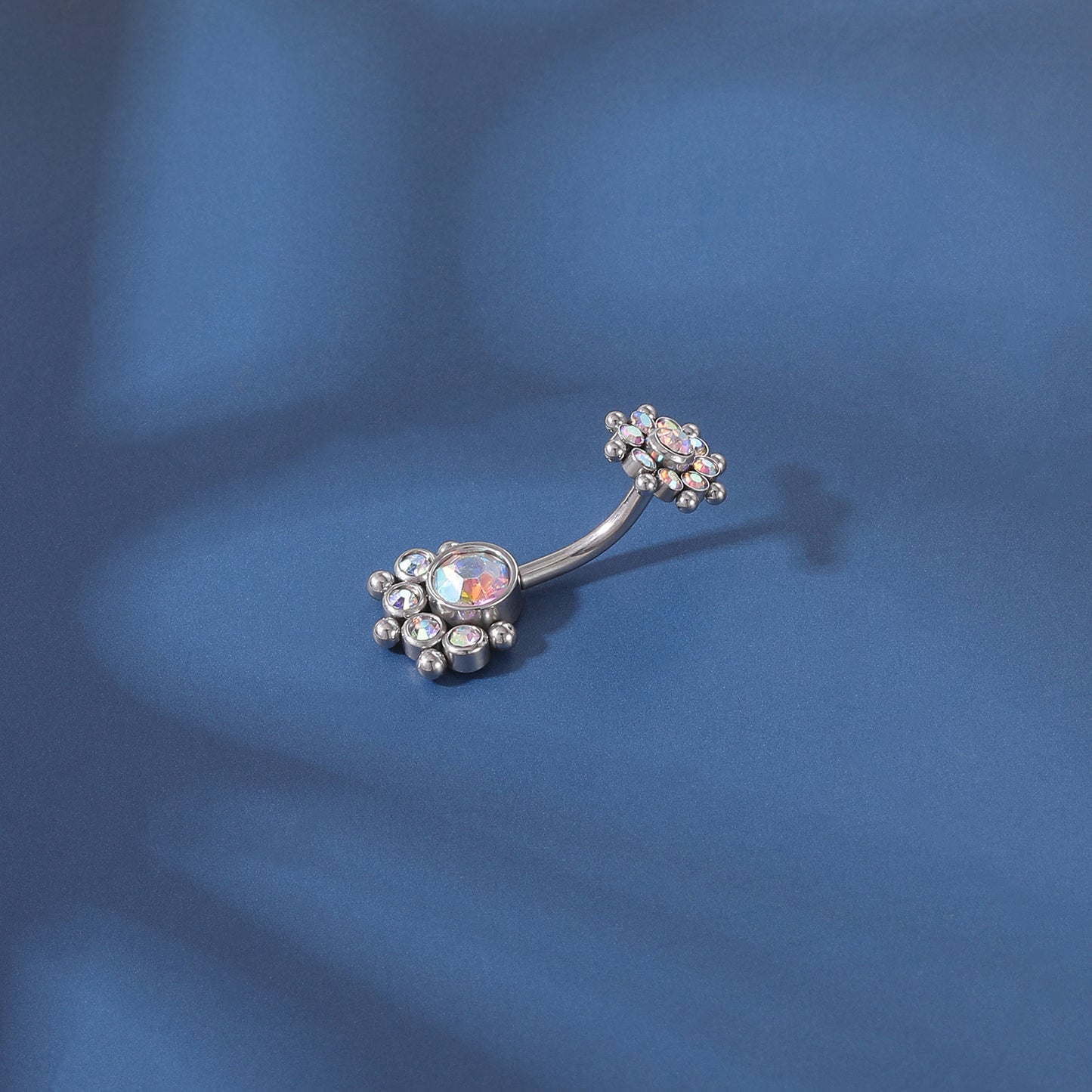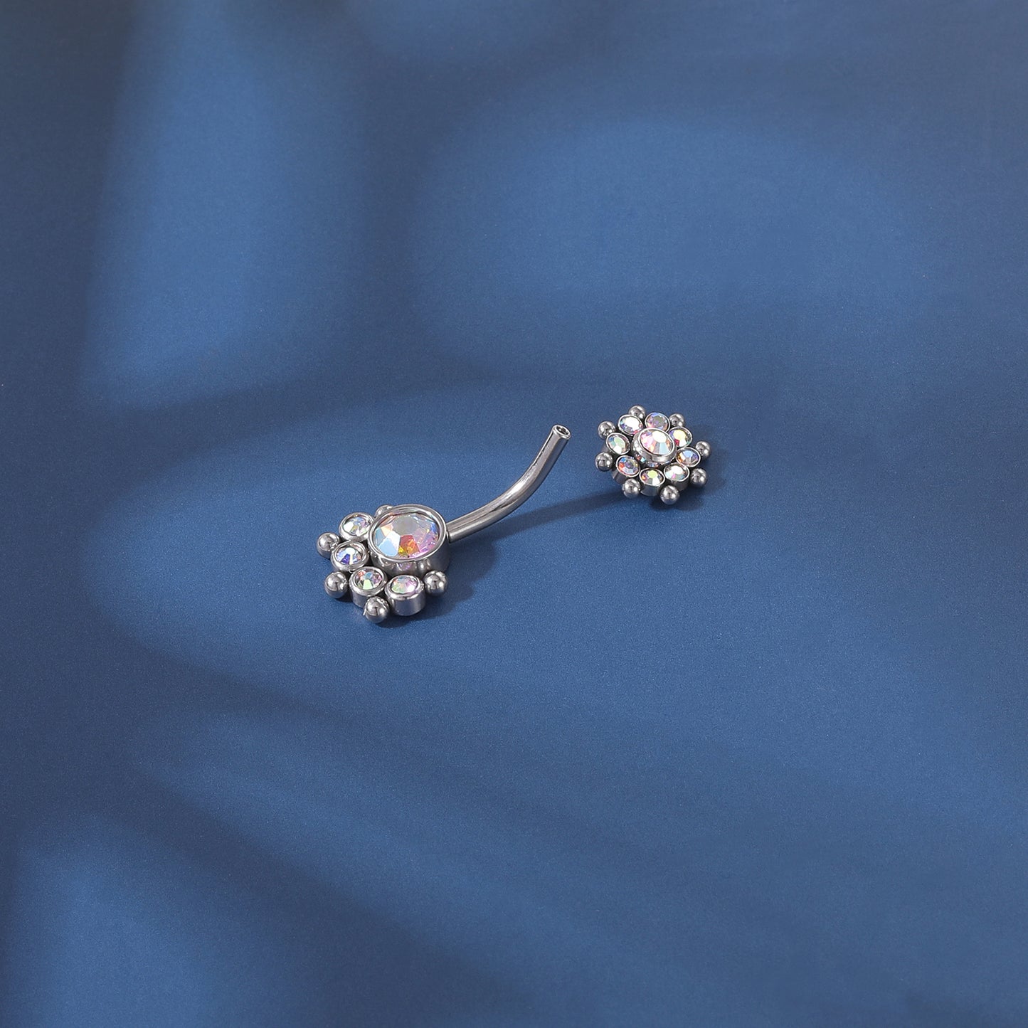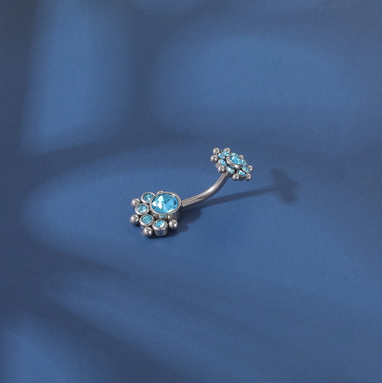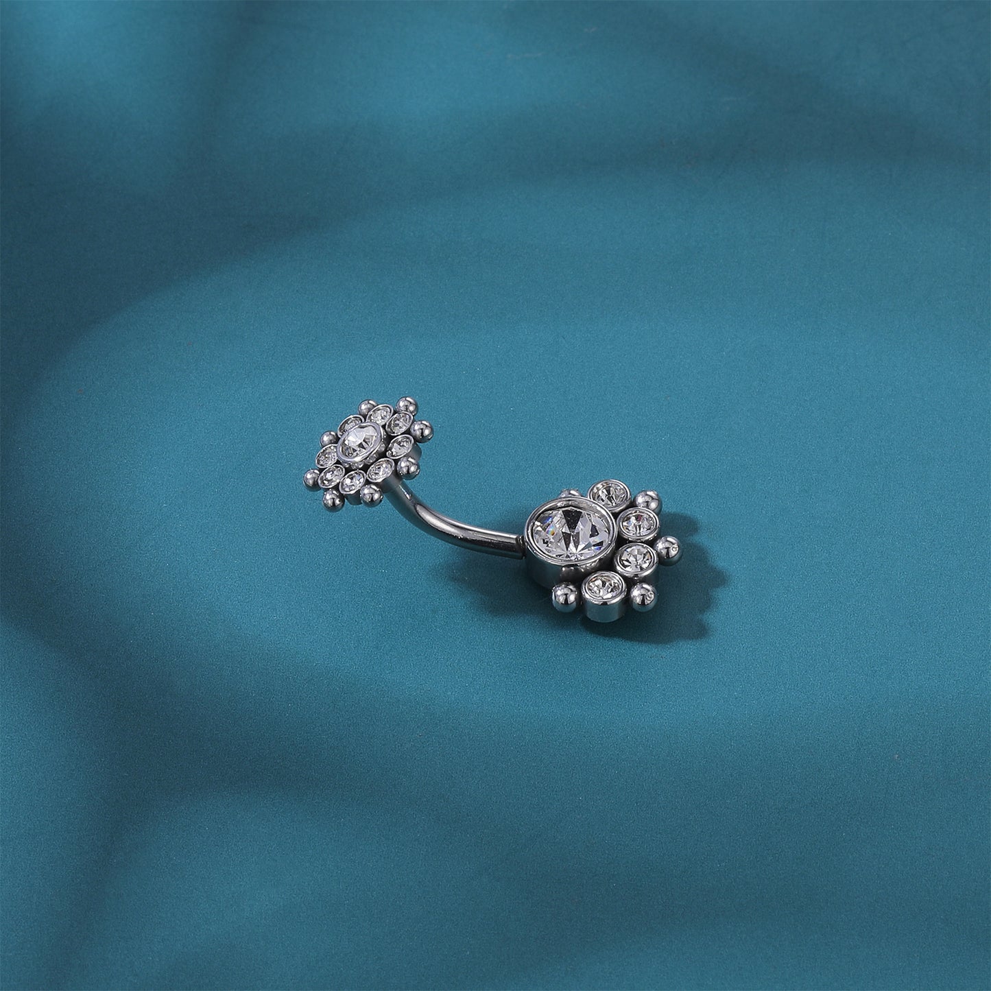 - Navel Ring Design: Sun Flower Zirconia Footprint Stainless Steel Ball Belly Button Piercing.
