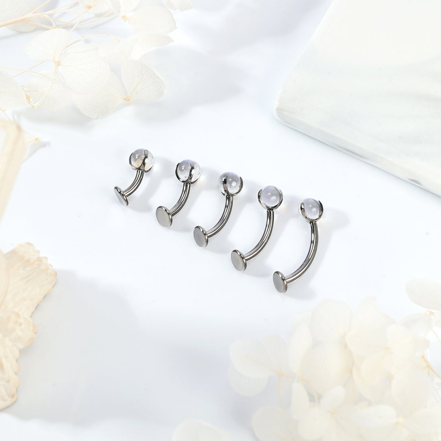 14G G23 Titanium Belly Navel Rings AB White Ball Belly Button Rings