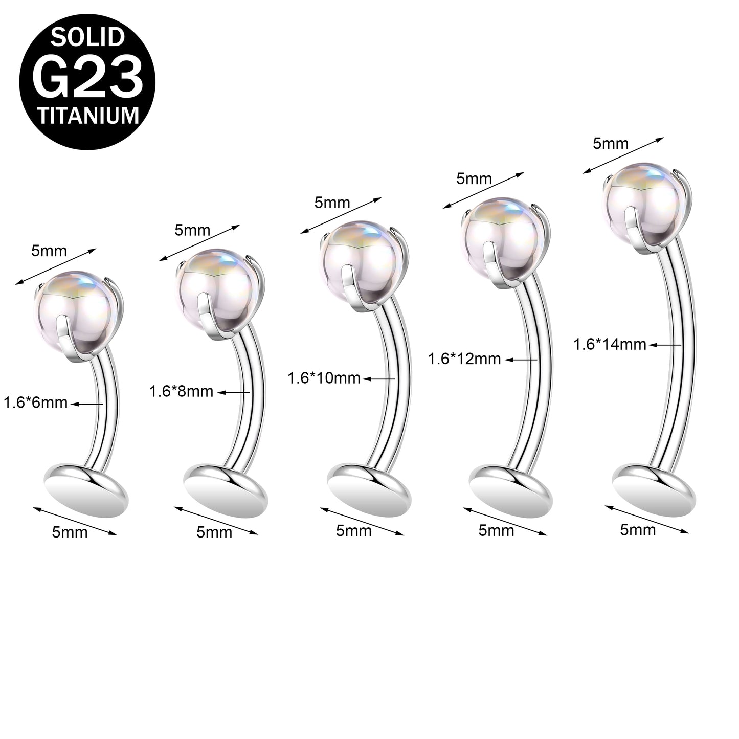 - Belly Bar thickness: 14G (1.6mm), Bar length: 6/8/10/12/14mm.