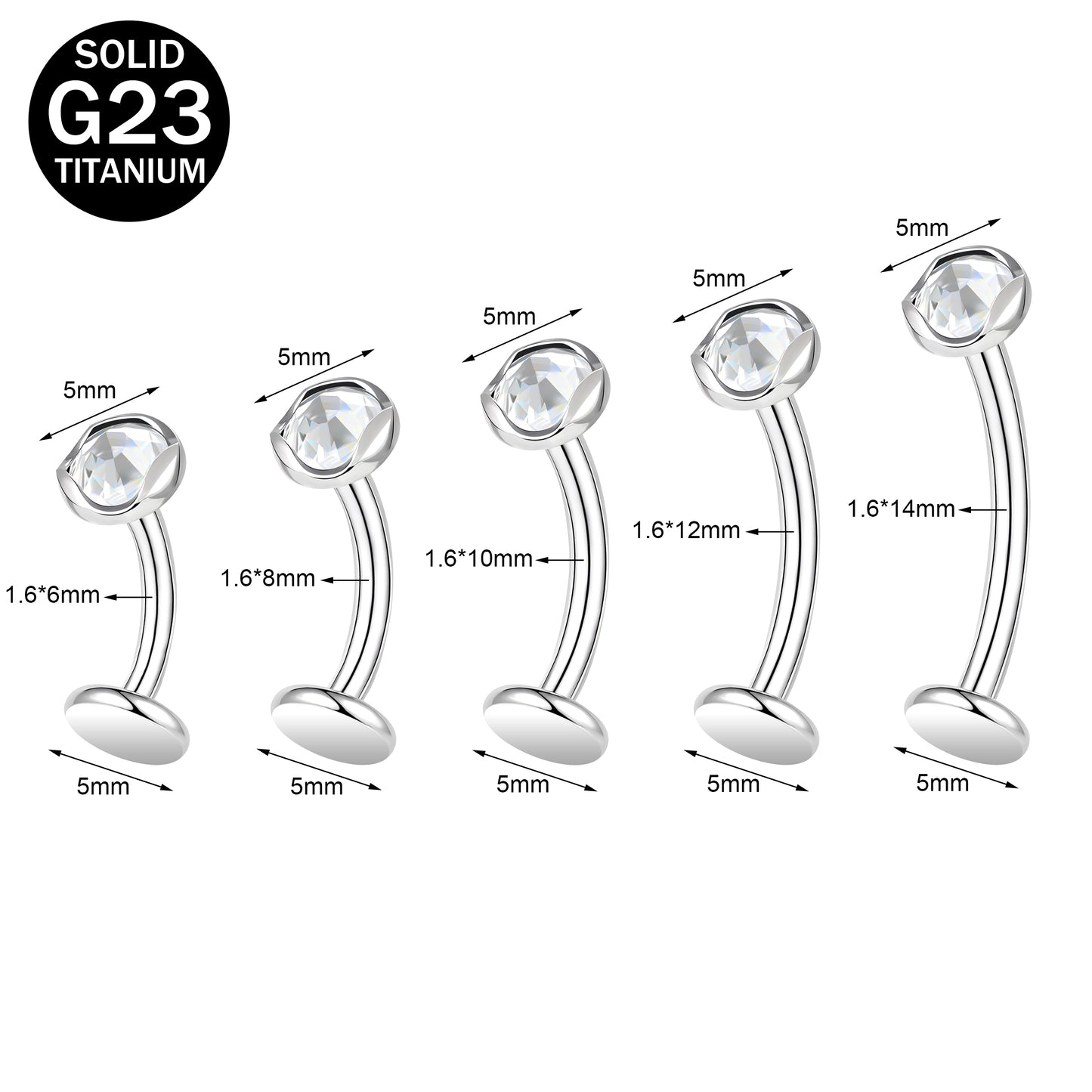 • Belly Bar thickness: 14G (1.6mm), Bar length: 6/8/10/12/14mm.