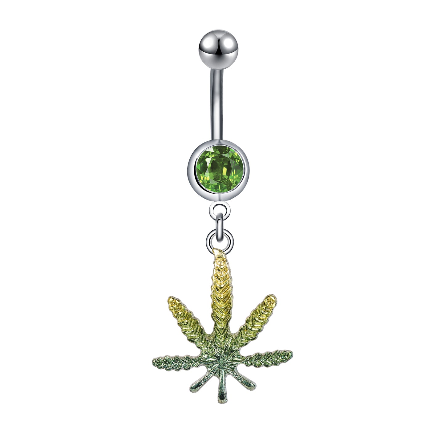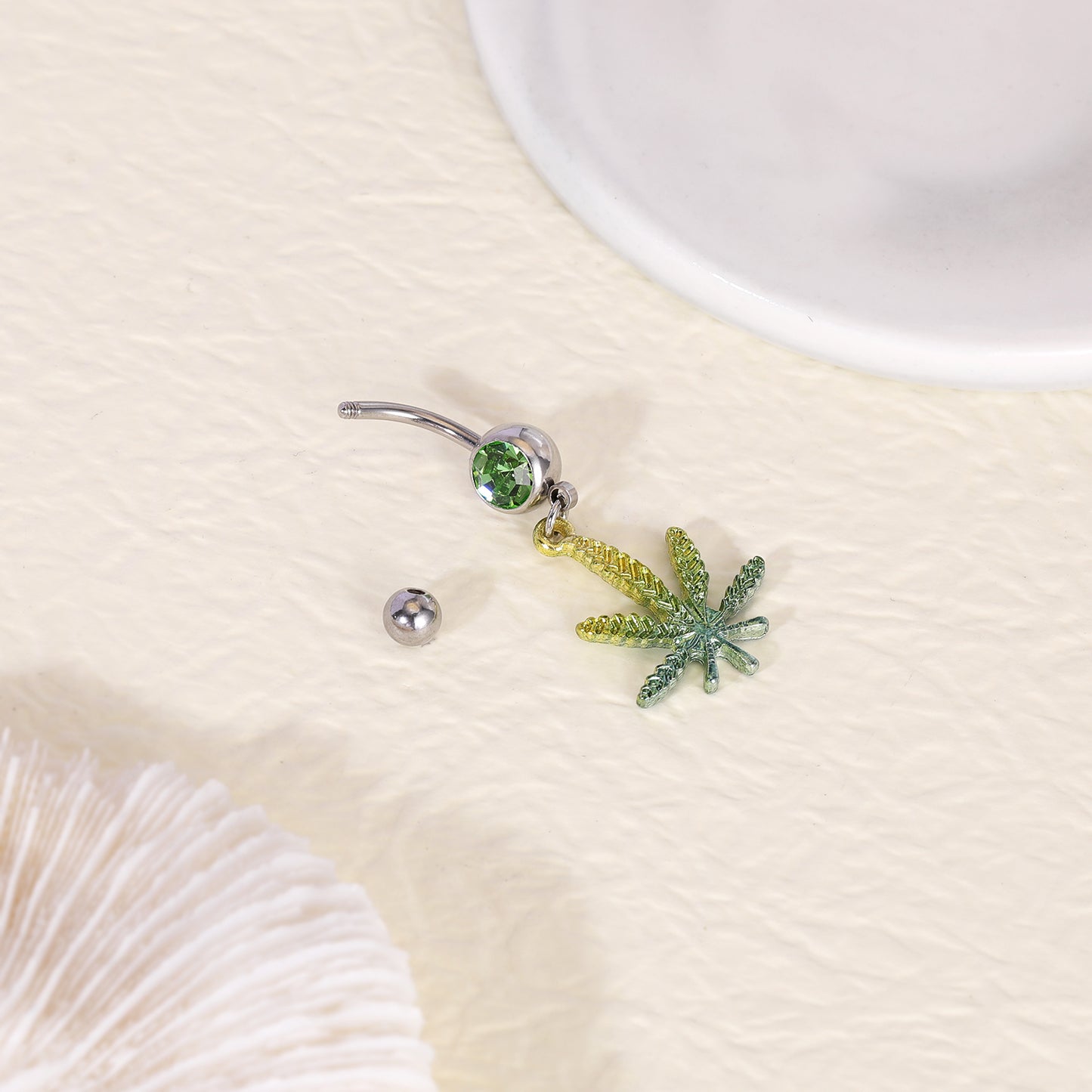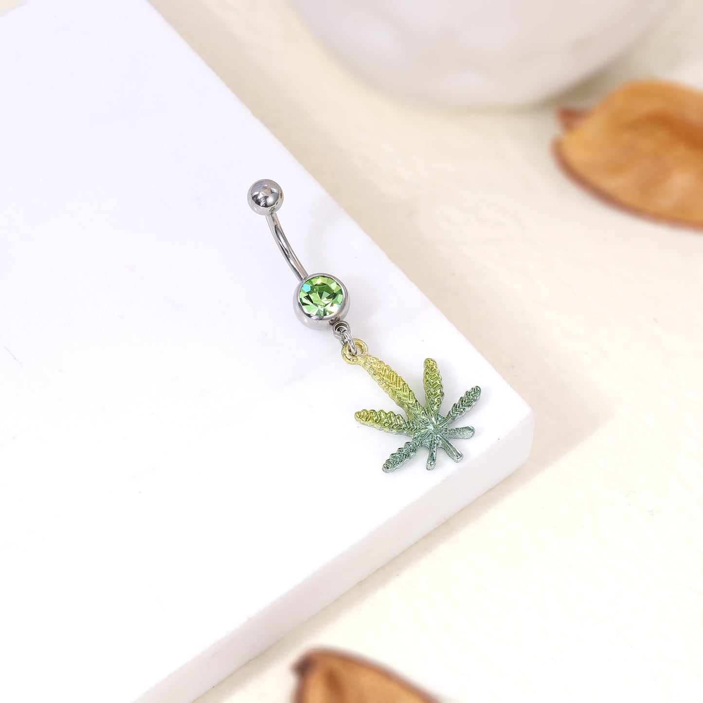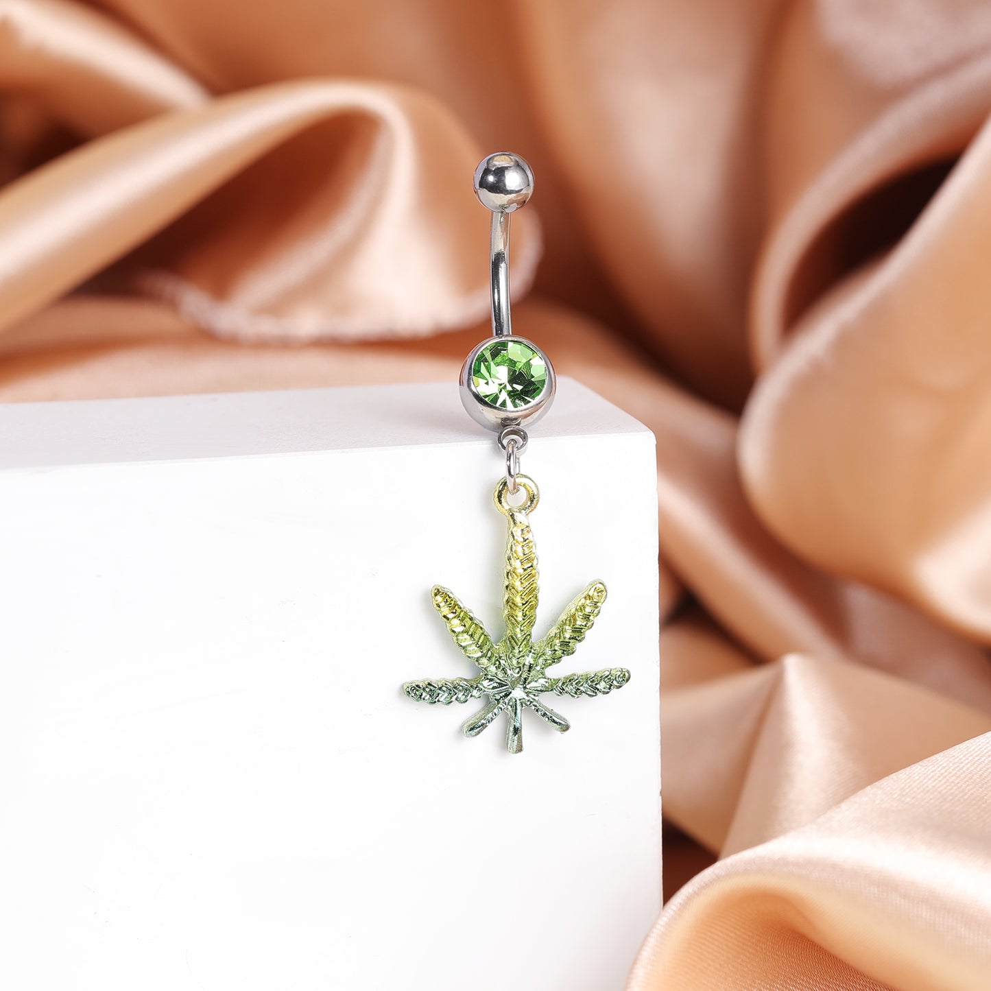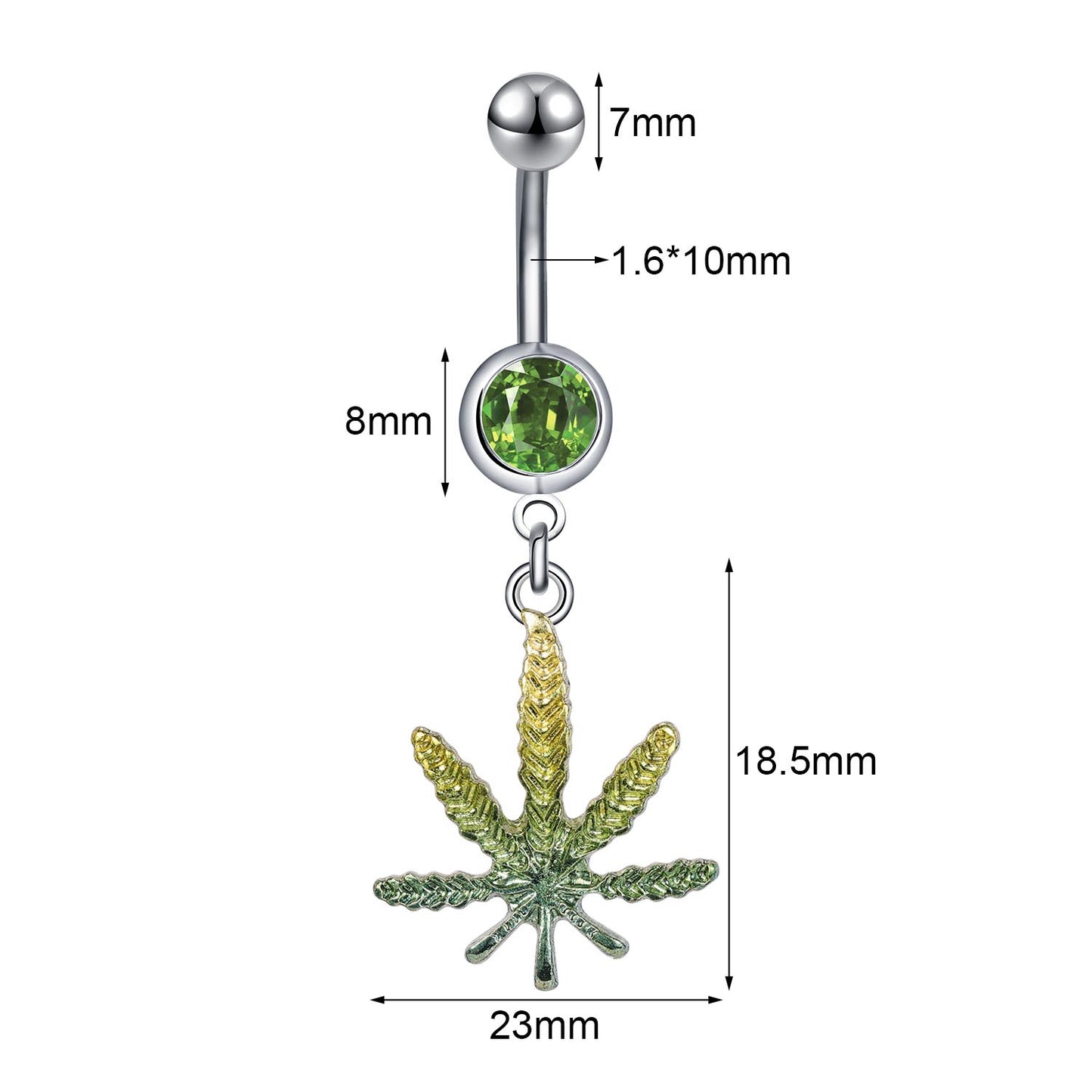 14G Green Grass Leaf Belly Navel Rings Cubic Zirconia Belly Button Rings