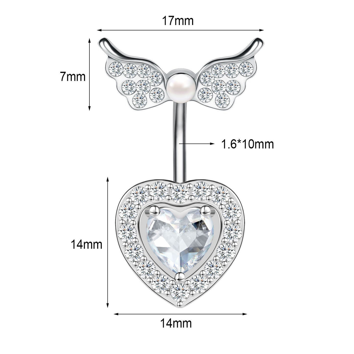 14G Heart Belly Navel Rings AAA Cubic Zircon Belly Button Rings