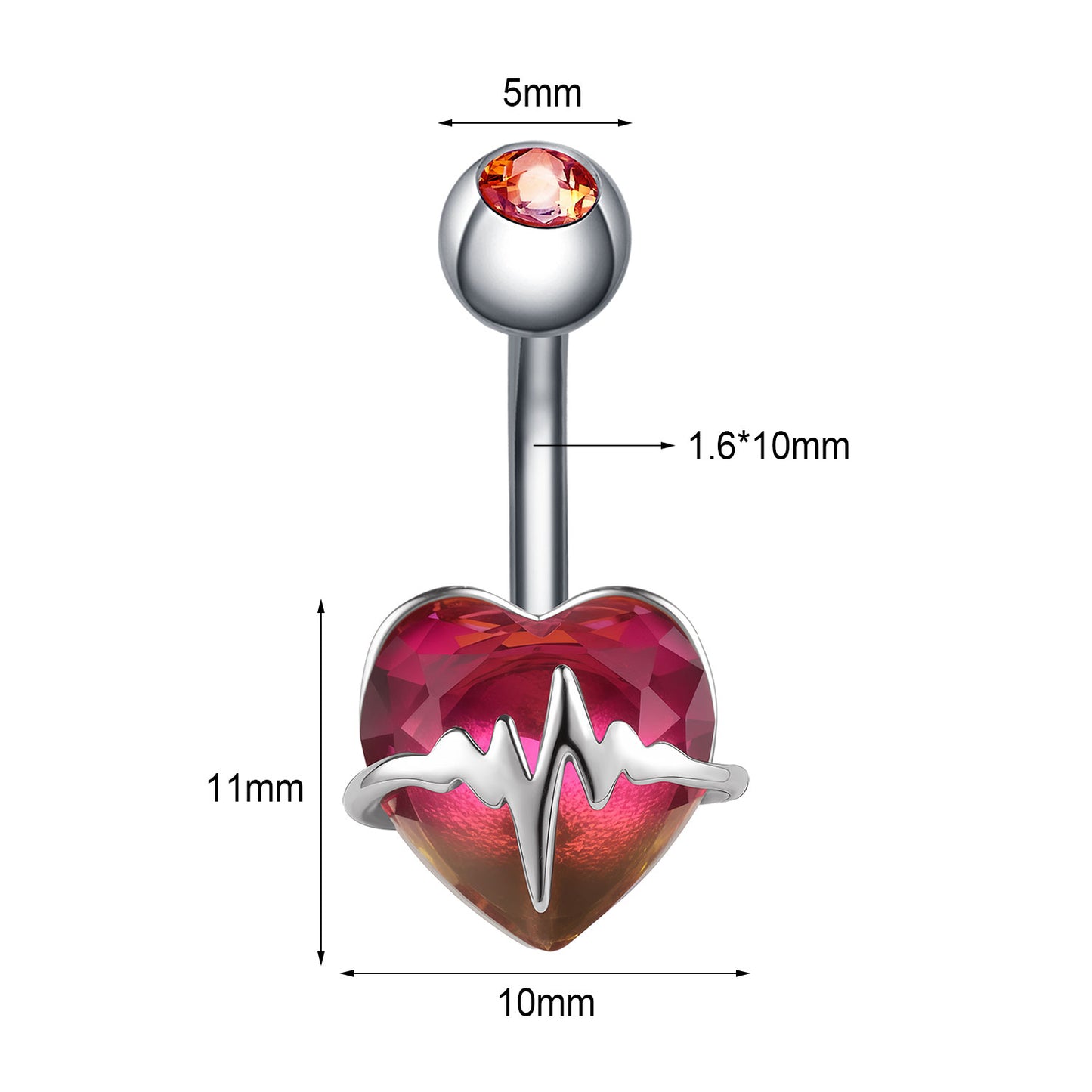 - Belly Bar thickness: 14G (1.6mm), Bar length: 10mm