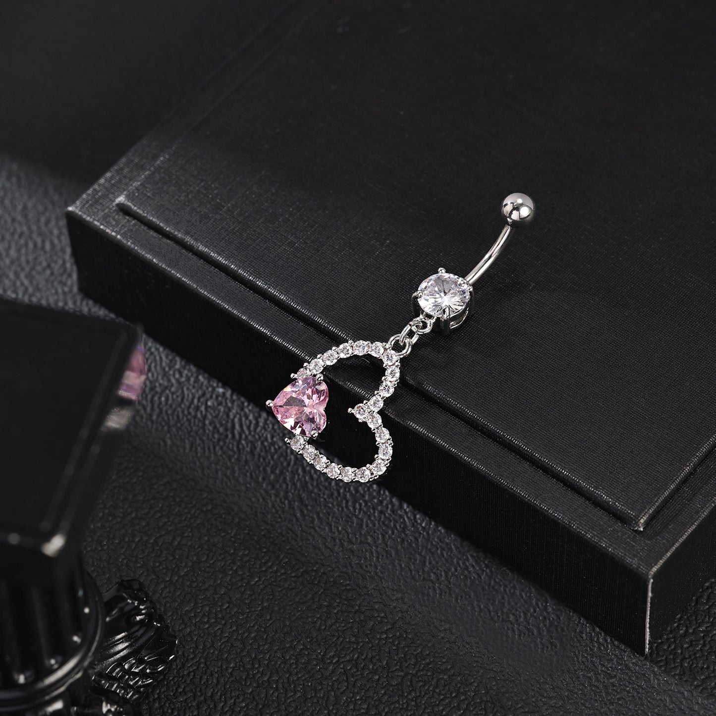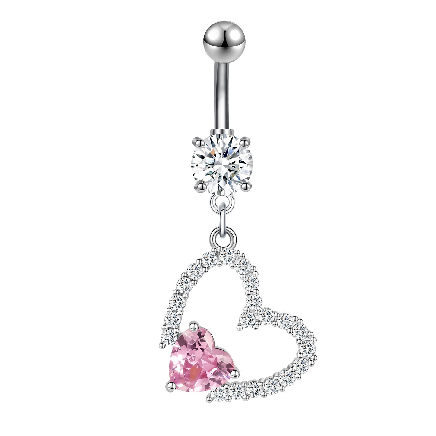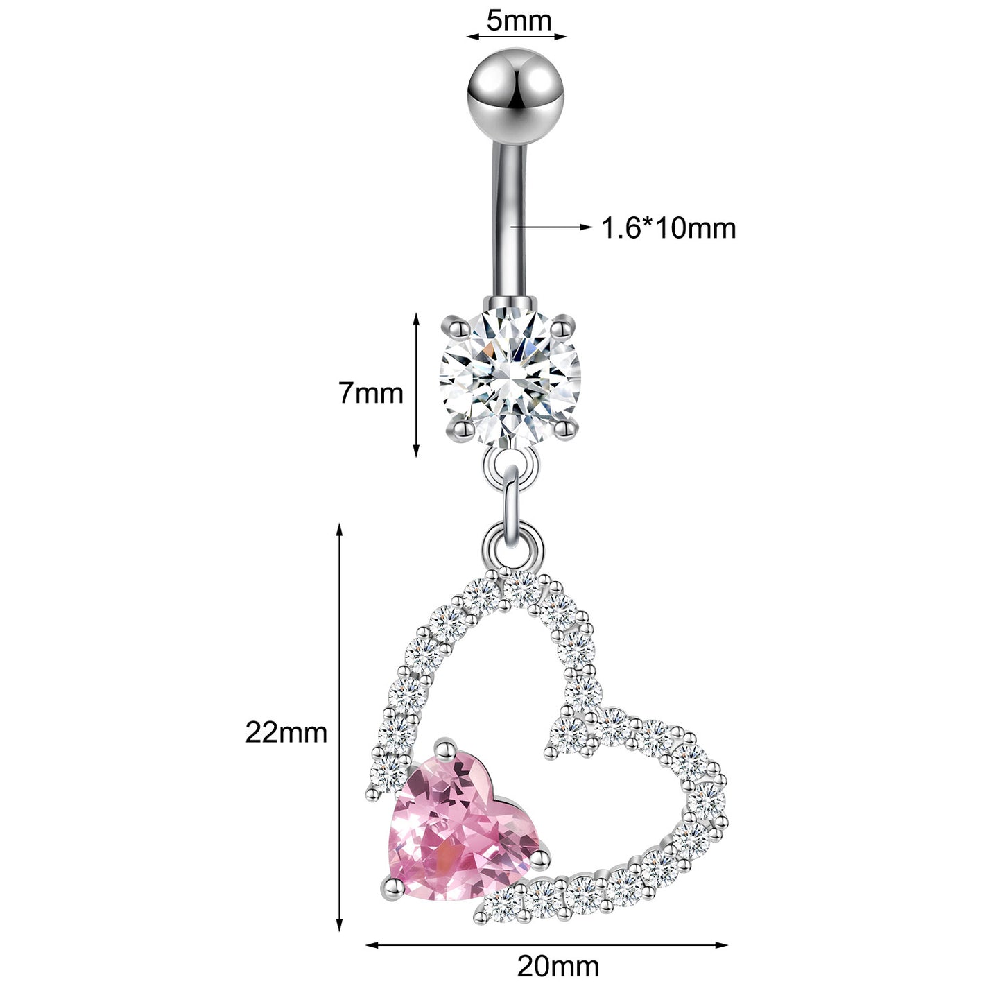 14G Heart Dangle Belly Navel Rings Bling Zircon Belly Button Rings