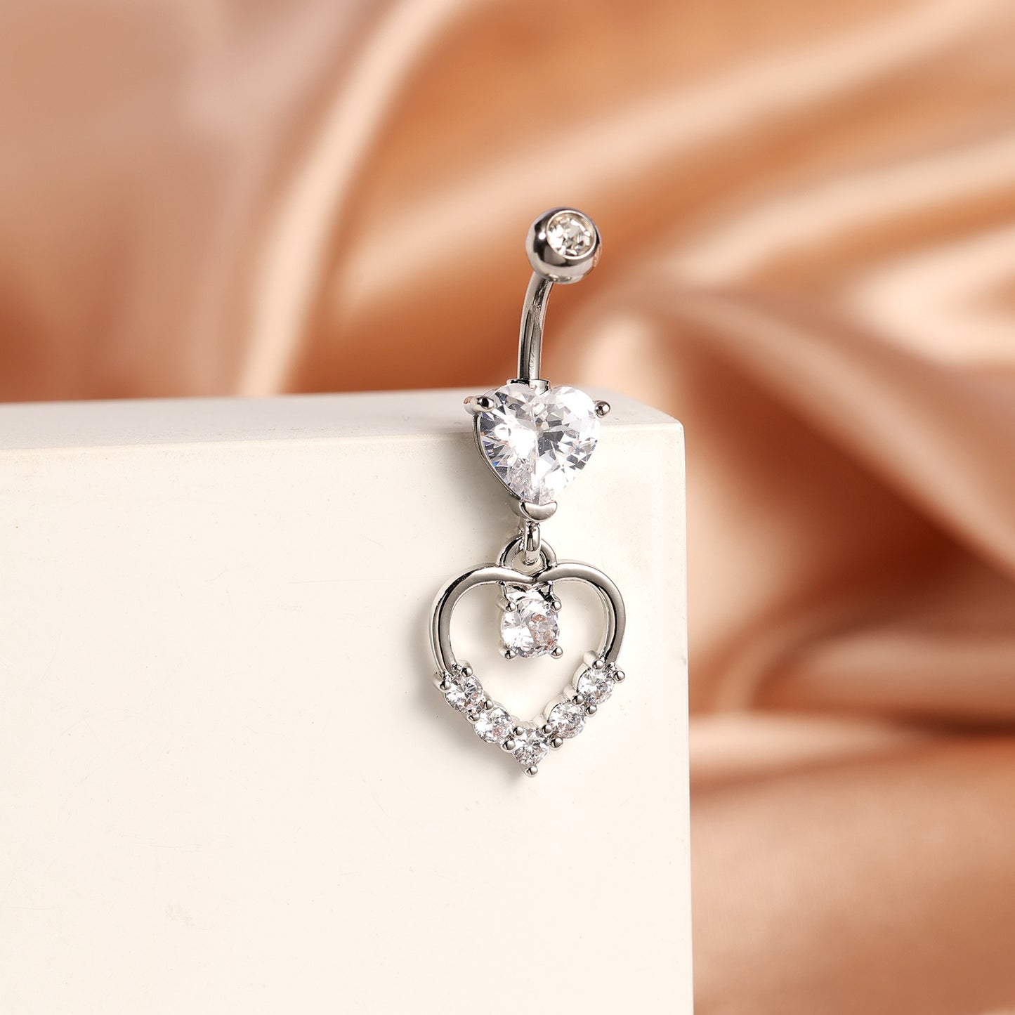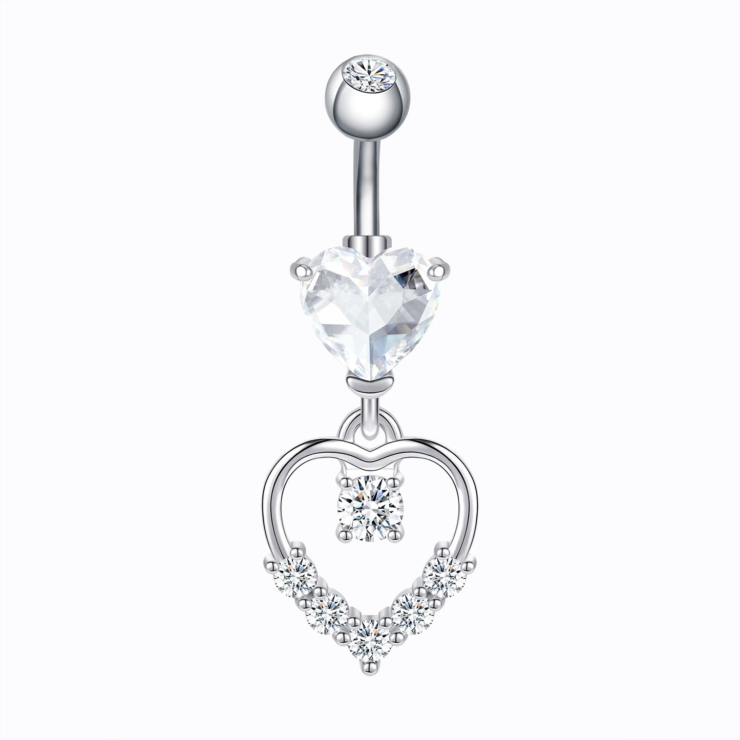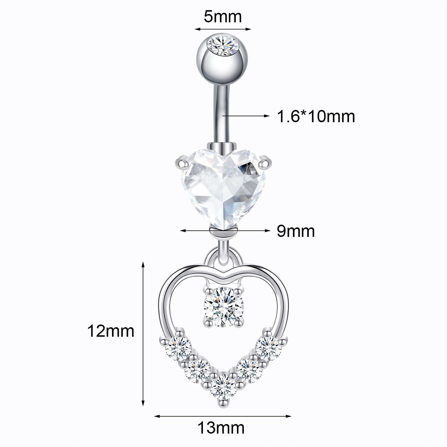 14G Heart Dangle Belly Navel Rings Heart Zirconia Belly Button Rings